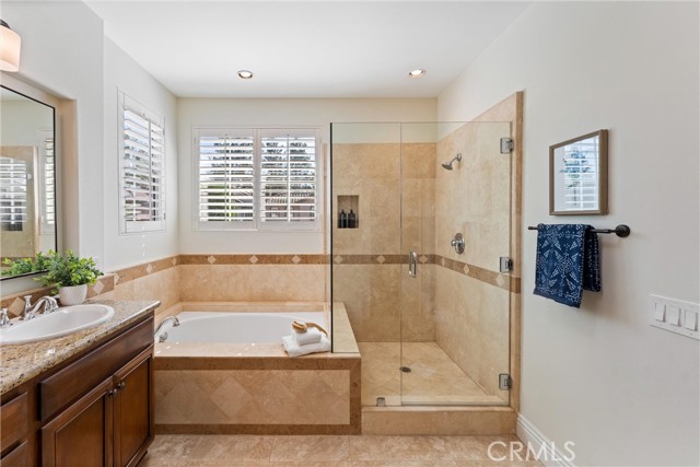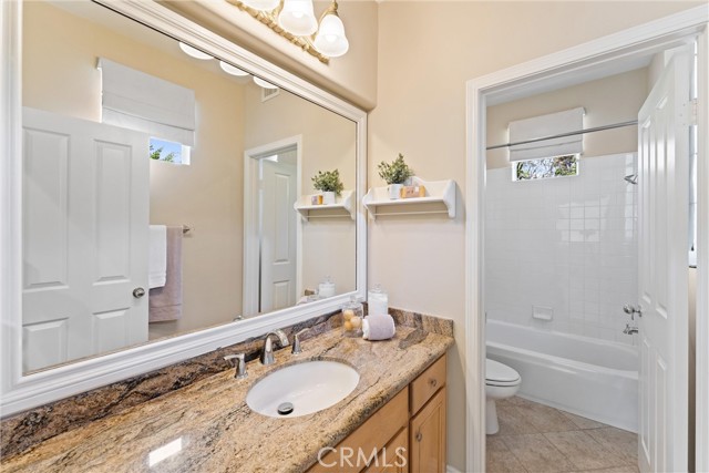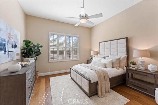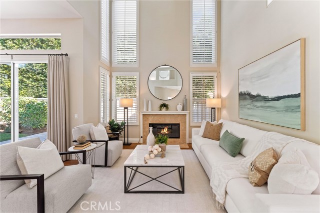 Lovingly owned and meticulously maintained by the original owners for over 30 years, this exceptional residence reflects true pride of ownership and offers a rare opportunity in highly desirable Tustin Ranch. Situated behind the gates of San Miguel, one of Tustin Ranch’s most sought-after 24-hour guard-gated communities, this impeccably cared-for home offers privacy, comfort, and timeless appeal. Thoughtfully tucked away from direct street exposure, enjoy a quiet interior location that enhances its peaceful setting. Even more appealing, there are no Mello-Roos, offering meaningful long-term savings compared to many neighboring communities. Inside, light-filled interiors showcase soaring ceilings, engineered wood flooring, and expansive windows that invite abundant natural light. The formal living room, centered around a stunning fireplace flows seamlessly into the dining area—ideal for both everyday living and entertaining. The remodeled kitchen combines style and function with sleek Caesarstone countertops, a striking tile backsplash, and warm cabinetry for a refined, contemporary feel. The adjacent family room opens to the backyard through sliding glass doors, embracing the quintessential SoCal indoor-outdoor lifestyle. Upstairs, the spacious primary suite serves as a private retreat with vaulted ceilings, a walk-in closet featuring a built-in safe bolted in for added security The primary bathroom offers dual sinks, a soaking tub, and a separate shower. A double-door upstairs office, designated as a bedroom with a closet, offers flexible living space for added convenience. One bathroom has been beautifully remodeled, while the others feature granite surfaces and tasteful finishes. Outdoors, the backyard feels like a private sanctuary adorned with fruit trees, a tranquil water feature, and large retaining wall that enhances privacy and ambiance. Flagstone hardscaping and a stone accent wall create a low-maintenance, yet inviting space for relaxing or entertaining. San Miguel is known for its beautifully maintained grounds and resort-style amenities, including a sparkling pool and spa. Residents enjoy proximity to scenic parks, walking trails, and renowned Tustin Ranch Golf Club. The home is also a quick stroll from award-winning Ladera Elementary through a private pedestrian gate within the regarded Tustin Unified School District. Just moments from shopping, dining, The Market Place, and major freeways, this location is as convenient as it is desirable.