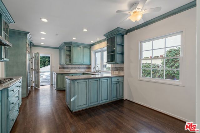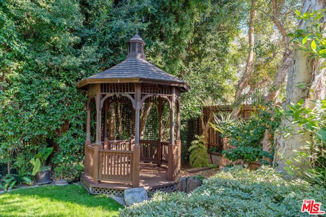 Beautiful, traditional home in prestigious Westwood neighborhood. This pristine home has a classic central floor plan with elegant formal living and dining rooms and a remodeled eat-in kitchen with blue granite and stainless appliances. There is a family room that could double as a 4th bedroom or an office that opens out to a Trex deck that is large enough for eating and entertaining. There are three bedrooms upstairs, all en-suite. The primary suite boasts soaring ceilings, floor to ceiling windows, a fireplace, a private deck, 2 walk-in closets and views of the Century City skyline. The private backyard has a landscaped garden and gazebo with sitting area. This home is situated blocks from Century City, and super convenient to UCLA and Beverly Hills. As per LAUSD website, located in the Fairburn Elementary school district.