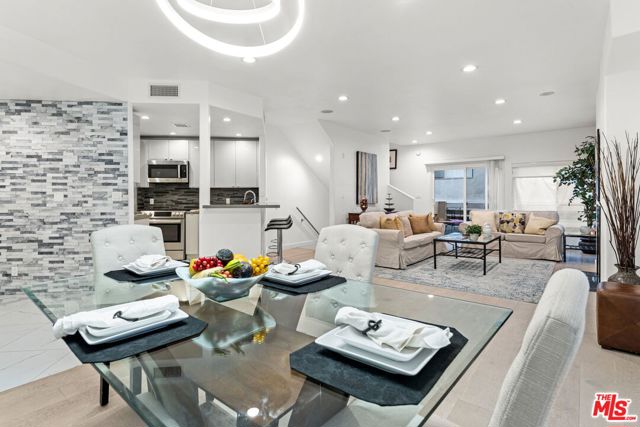 Experience the best of Brentwood living in this beautifully updated tri-level corner townhome. With approx. 1,600 sq.ft. plus a bonus room ideal for a home office or gym.Enjoy direct entry to a private 1-car garage plus 2 additional secured parking spaces, an open-concept floorplan with great natural light, and stylish finishes throughout, including tile and engineered hardwood flooring, recessed lighting, and built-in speakers. Brand new water heater. The remodeled kitchen features Bosch stainless steel appliances, Caesarstone countertops, a breakfast bar, and ample pantry/storage space. Both bedrooms are generously sized with en-suite bathrooms, and the living room and primary suite each offer a granite fireplace for added warmth and charm.All just moments from UCLA, top Brentwood shops, markets, restaurants, cafes, and convenient freeway access.