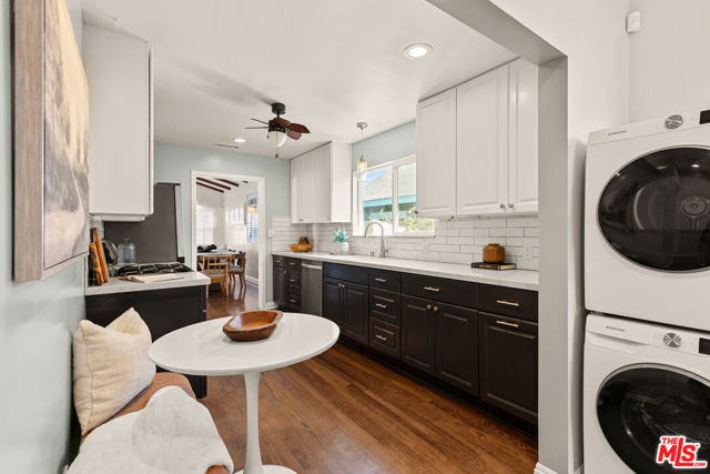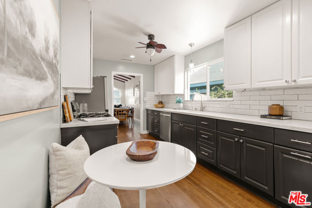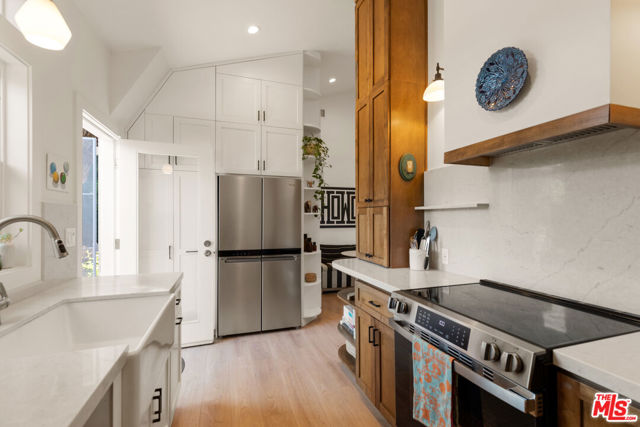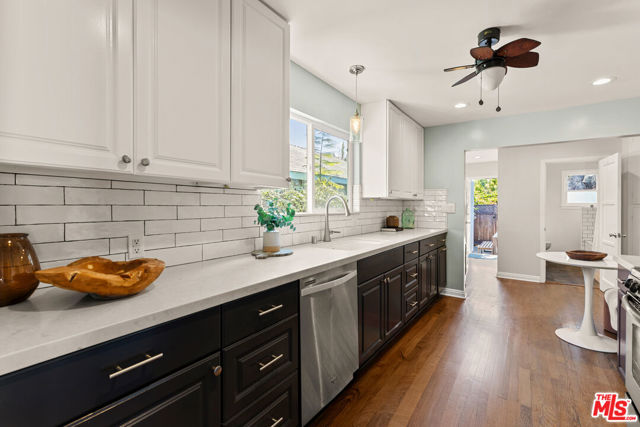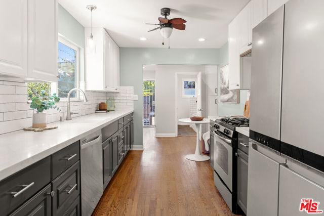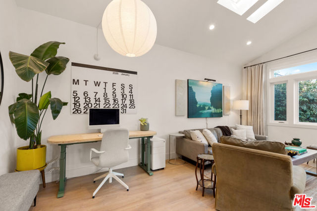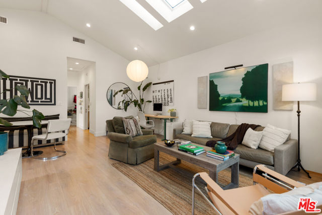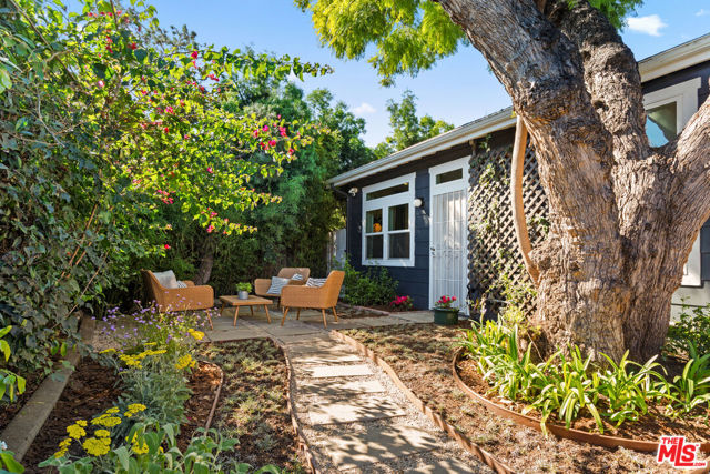 A vibrant setting in prime Silver Lake provides the perfect opportunity for an artistic compound, an idyllic live/work setup, a primary residence with a sweet guest house, or a rental property for savvy investors. This incredibly charming, character filled hideaway sits in walkable Silver Lake, just around the corner from the neighborhood Target. Two legal addresses on one lot, flowing seamlessly with a 1920's original California Bungalow in the front, plus a brand new 2 bedroom Contemporary Bungalow in the back. Both adorned with timeless details, stylish finishes and classic highlights including vaulted ceilings, beautiful hardwood floors, an original brick fireplace, clerestory windows, two galley styled kitchens and ample storage space throughout. Lovely outdoor spaces lined with whimsical landscaping and a storybook LA jacaranda tree- all tucked away behind a privacy gate. With multiple living options for a variety of LA lifestyles in a convenient location a quick walk from neighborhood parks, the shops on Sunset, and the beautiful Silver Lake Reservoir, this London Street cozy compound provides endless options to create your Silver Lake dream.