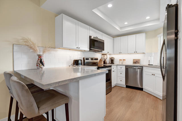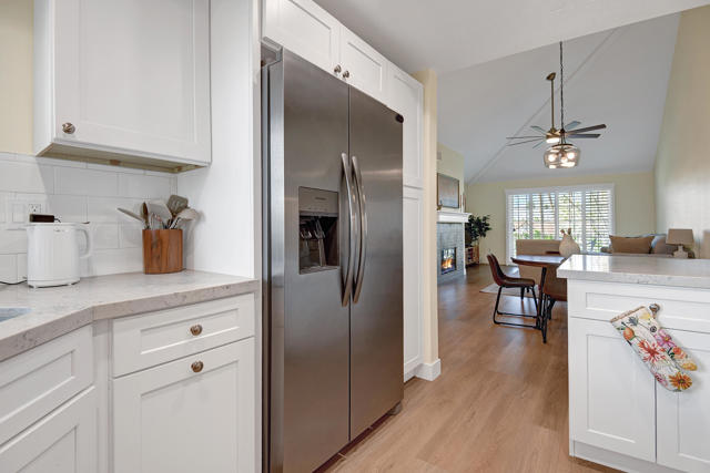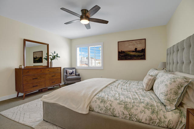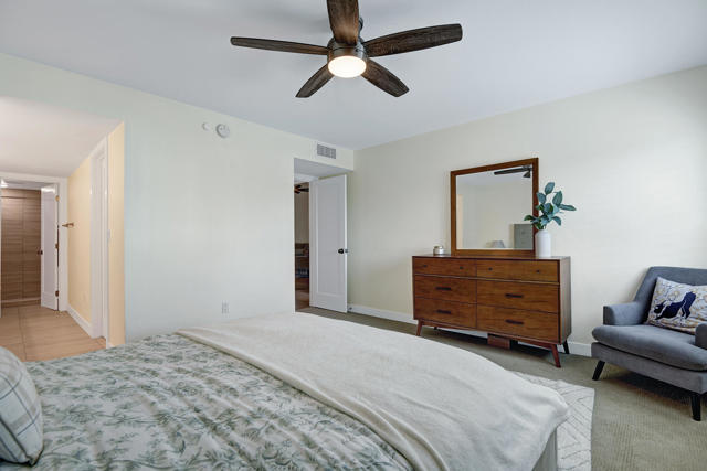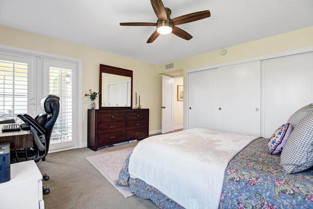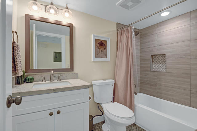 Updated Upstairs Condo in Desert Breezes | Prime Palm Desert Location. Welcome to this beautifully updated upstairs residence in the highly desirable Desert Breezes community in Palm Desert. Offering two bedrooms and two bathrooms, this light-filled condo provides comfort, privacy, and a functional open layout ideal for full-time living, a seasonal retreat, or investment.The home was thoughtfully renovated just two years ago, featuring updated flooring, a beautifully remodeled kitchen and bathrooms with quartz countertops, updated electrical wiring, an upgraded A/C system and water heater--offering modern style along with long-term peace of mind. The spacious living area showcases a cozy gas fireplace and direct access to a private patio, creating a seamless indoor-outdoor flow ideal for both relaxing and entertaining. Plantation shutters and tasteful window coverings throughout add a refined, timeless touch.The upgraded kitchen showcases quality cabinetry, Quartz countertops, stainless steel appliances, and bar seating that opens to the dining and living areas--perfect for everyday living or entertaining. An indoor laundry closet with washer and dryer adds convenience.Located across from the Indian Wells Tennis Garden, home of the BNP Paribas Open, this Palm Desert property enjoys an exceptional location near shopping, dining, recreation and world-class golf.Residents of Desert Breezes enjoy resort-style amenities including pools and spas, tennis and pickleball courts, a fitness center, and clubhouse. HOA dues include internet, cable, Wi-Fi, water, and trash service--making ownership both simple and convenient.This upstairs home is a wonderful opportunity to enjoy all that Desert Breezes and Palm Desert have to offer.