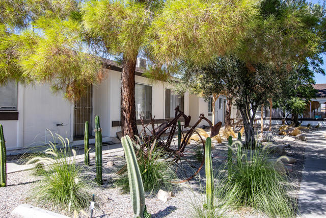 Prime hillside 6-Plex offers a wonderful value & investment opportunity in world famous Joshua Tree. Each of the spacious, 2-bedroom, 1-bath apartments spans nearly 900 sq. ft. & features modern finishes throughout. Two of the units have been recently renovated top to bottom while two more of the units were recently painted & updated. Each equipped with AC, gas wall heaters, & fully appointed kitchens, including gas stoves, refrigerators, microwaves, & dishwashers. With two dedicated parking spots per unit & private patios, tenants enjoy added convenience & comfort. The property is separately metered for electricity & gas, making it an efficient investment. The exterior has recently been updated while new landscaping was installed to beautify & conserve water. A shared courtyard with a pergola, picnic table, & desert landscaping, providing a relaxing outdoor space for residents. A laundry room with two sets of washers & dryers adds further appeal. Located on a hillside, the building offers sweeping panoramic views, enhancing its desirability. The 6-Plex is ideally located just 4 minutes from Copper Mountain College, 10 minutes from Hi-Desert Medical Center & the courthouse. 25 minutes from the 29 Palms Marine Base. Palm Springs is just 44 minutes away. With the Morongo Basin's booming rental market & growing demand, this property is a solid investment for both long-term & medium-term rentals. Don't miss out on this rare opportunity in a rapidly expanding area.
