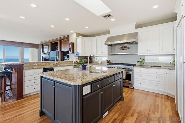 One in a million opportunity to live Front Row in beautiful Cardiff By The Sea! Unobstructed ocean whitewater AND San Elijo Lagoon views from the expansive deck, livning area, kitchen, dining....the incredible views are EVERYWHERE! Check the surf at world famous Cardiff Reef, all the way to Seaside Reef. Views to Mexico!Walk to the beach, Seaside Market, and the wonderful restaurants that make Cardiff the ideal beach community to live. Glen Park is just down the street and offers a beautiful place for the kids to plya as well and a tennis and basketball court. Wonderful, award winning schools are also close by. High end appliances throughout. Expansive master with newly remodeled bath including jetted tub, second floor suite with living room and bath is perfect for guests. Additional surfboard storage. Oversized garage, boat/RV parking and a yard add to the amazing amenities of the home.