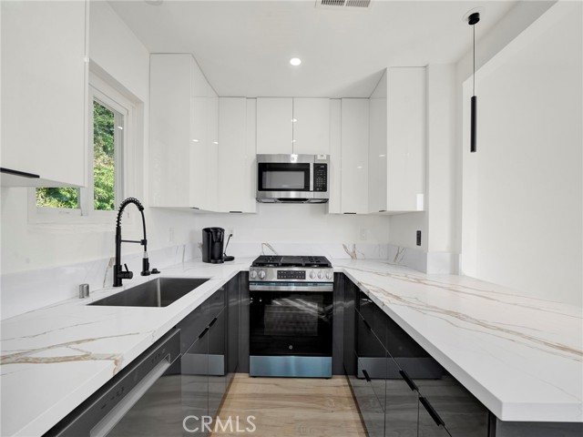 Welcome to the standout residence in a beautifully renovated triplex in the heart of Los Angeles. This oversized 3-bedroom, 2-bath unit has been completely remodeled from top to bottom—offering the rare opportunity to be the very first occupant of a thoughtfully upgraded home with sweeping city views. Inside, you’ll find a bright, open-concept layout featuring all-new flooring, fixtures, appliances, and designer finishes throughout. The expansive living area is perfectly situated to showcase stunning panoramic views of Los Angeles, creating an impressive setting for both relaxing and entertaining. The brand-new kitchen is equipped with modern appliances, sleek cabinetry, and ample counter space. A separate laundry room with an in-unit washer and dryer provides added convenience. The spacious primary suite, along with two additional bedrooms, offers generous proportions, abundant natural light, and beautifully updated bathrooms. Additional highlights include two dedicated parking spaces and a prime location near popular dining, shopping, and major commuter routes—just a short walk to Sunset Boulevard. Don’t miss the opportunity to make this fully remodeled, view-filled residence your next home.
