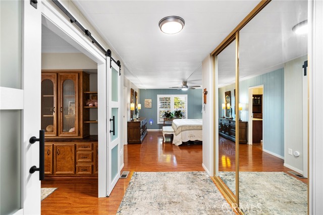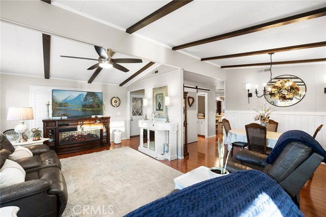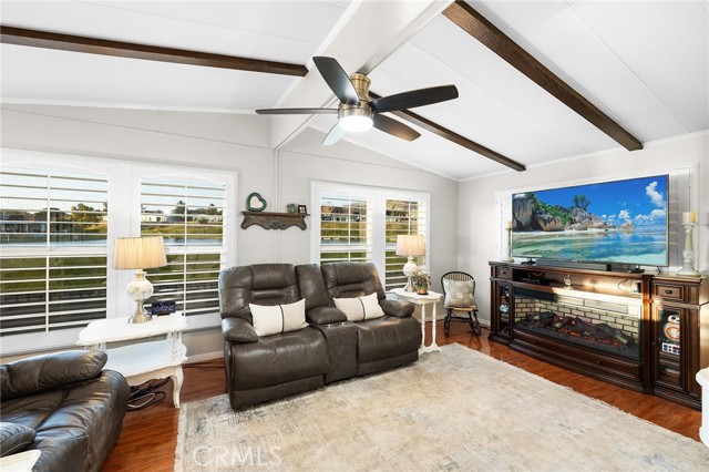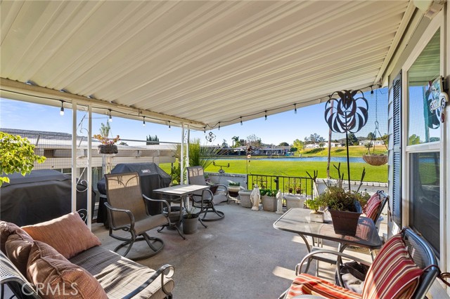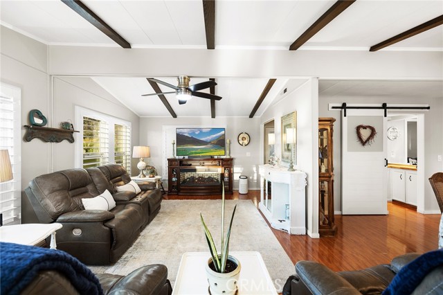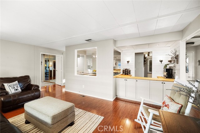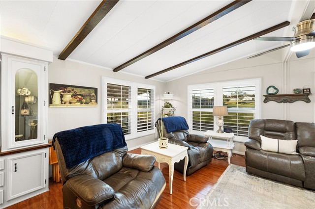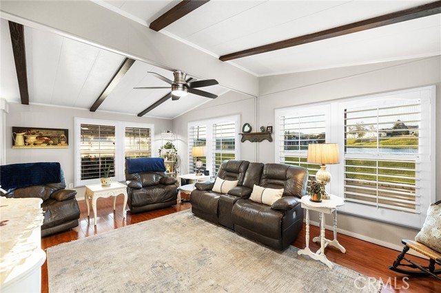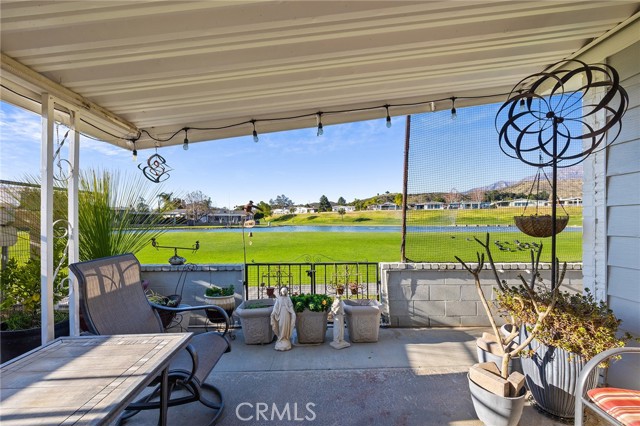 Welcome to this beautifully updated home in Highland Springs Village on owned land with one of the most desirable locations on the golf course, presenting incredible views stretching from the golf course to the mountains. Step inside to discover the sizable great room consisting of the kitchen, dining nook, coffee bar, and living room with numerous upgraded features. To the rear of the home you'll find the large living room with an abundance of windows offering vaulted ceilings and incredible golf course views. The two bedrooms offer a generous amount of space, with the primary suite offering a home office or retreat, while the two full bathrooms include tasteful upgrades and a great deal of storage. Soak in the incredible views from two great vantage points, the enclosed patio or the covered patio, both giving you the feeling of sitting right on the golf course. Move in with confidence knowing that this home has been updated and cared for with new exterior paint in 2025, a water filtration system installed in 2024, plumbing upgrades in 2024, a new roof in 2023, a new water heater in 2022, as well as dual pane windows complete with plantation shutters. Additional features include a storage shed, gated carport and a beautiful, producing orange tree. Residents of Highland Springs Village can take advantage of amenities such as the swimming pool, tennis court, pickleball courts, and the golf course. This is a rare opportunity so schedule your private showing today!