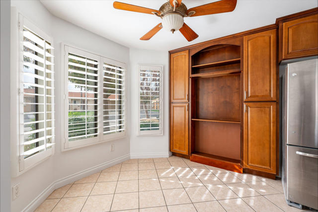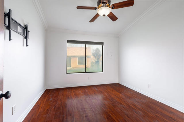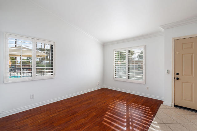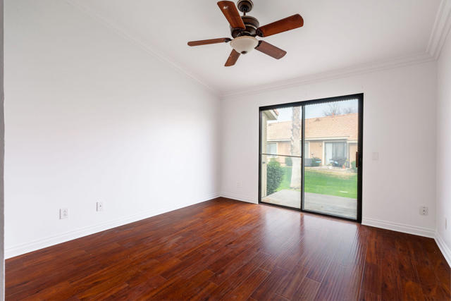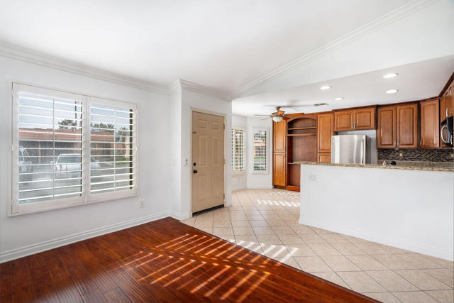 Welcome to this beautifully maintained end-unit condo in the desirable gated community of Royal Palms -- Just steps from the pool!This residence has been meticulously cared for and thoughtfully updated. As a prime end unit with only one common wall, you'll enjoy added privacy and natural light throughout. The home features brand new interior paint and has recently undergone HVAC service and maintenance, offering peace of mind and move-in-ready comfort.Inside, you'll find wood laminate and tile flooring throughout for easy care and durability. Custom paint, crown molding, custom shutters, ceiling fans, vaulted ceilings with pot shelves, and other designer touches add warmth and character to this inviting home.The spacious kitchen offers abundant cabinetry and pantry storage, making meal prep and entertaining a breeze. The dining area easily accommodates a large table and flows seamlessly into the living room, where you can enjoy views of the pool and local mountains.The generous primary suite features a walk-in closet and private bath with a walk-in shower, plus a separate laundry closet for the washer and dryer. A glass sliding door opens to your own private patio overlooking the greenbelt -- the perfect spot to relax and unwind.Residents of Royal Palms enjoy access to two pools, a gym, barbecue areas, and the main pool clubhouse. Whether you're looking for a starter home, an investment property, or a second vacation retreat, this move-in-ready condo offers comfort, convenience, and resort-style living in a prime location.
