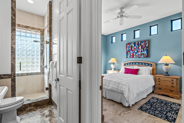 VIEW! VIEW!! VIEW!!! Mesmerizing Views await you from tis sleek, modern home towering 3,000 feet above the Coachella Valley with exceptional, elevated views from Palm Desert to Thermal & beyond. Built in 1998, this Modern Manse is situated on over 3.5 acres amidst the enchanting natural desert landscape, just below the Santa Rosa and San Jacinto Mountains. This unique enclave showcases exquisite design with walls of windows facing out to the valley floor, capturing the sparkling city light views. Ideal for entertaining, or to be enjoyed for casual serenity & inspiration in a Great Room concept with the living, dining, and island kitchen being open areas with a centerpiece granite, gas fireplace, kitchen with slab granite counters, newer cabinetry, new stainless steel appliances, and walk-in pantry.In addition, the Great Room offers 12 to 14 foot ceilings and a custom designed wall for works of art.The sensuous primary suite is just off the living room and features a corner granite, gas fireplace, architectural windows, and glass-paneled French doors leading to the patio. The primary bath features a separate granite shower & jetted tub with views of the natural outdoors, double granite vanity, & large walk-in closet.The spacious guest rooms are on either side of the entry hall along with a striking marble guest bath.The home is bedecked by a wrap-around patio off the Great Room & Primary Suite, another patio off the Dining, and custom pavers throughout the front promenade and driveway to the garage.There is also a separate large storage building a short stroll from the main house, which would be ideal for a casita. The structure is currently an attractive exterior with custom pavers in front.Royal Carizzo is a private, gated community of 24 custom homes, where you're just minutes away from the fashionable shops & eateries of El Paseo, the museums and nightlife of Palm Springs, the Tennis Gardens in Indian Wells, and Empire Polo Club grounds in Indio. Come enjoy the Ultimate Desert Lifestyle of tranquility and natural beauty in this spectacular offering!
