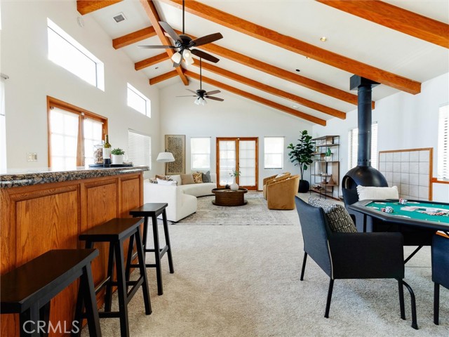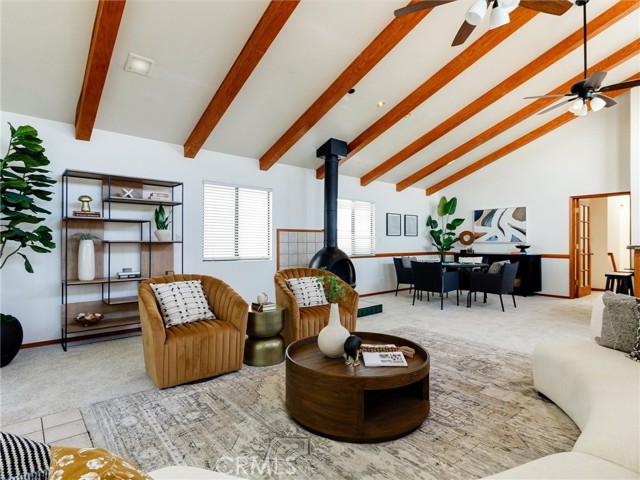 As you enter the front door, you are welcomed by an open floorplan with an updated kitchen that immediately feels both inviting and functional. Featuring white shaker cabinets, quartz countertops, and a peninsula with seating for up to four, this space offers abundant storage and generous counter space — all flowing seamlessly into the eat-in dining area and living room for easy everyday living and effortless entertaining. Just beyond the main living area, you’ll find a dedicated office, perfect for working from home, along with a spacious downstairs den that includes an additional dining area ideal for hosting larger gatherings and holidays. The home offers 6 bedrooms, including 3 conveniently located downstairs. Upstairs, the expansive primary suite feels like a private retreat with high ceilings, two closets, an en-suite bathroom, and a large balcony for enjoying fresh air and quiet mornings. You’ll also love the oversized upstairs den featuring vaulted ceilings, a wet bar, fireplace, and wrap-around deck that creates incredible indoor-outdoor flow, perfect for entertaining or relaxing. With 3 bathrooms, multiple common living spaces, potential RV parking, and a flexible layout, this home is ideal for a large family, multi-generational living, or anyone who simply wants room to spread out. There’s even potential to configure the space as a large main home with a junior ADU setup, depending on your needs. If you’ve been looking for space, flexibility, and versatility this is it!