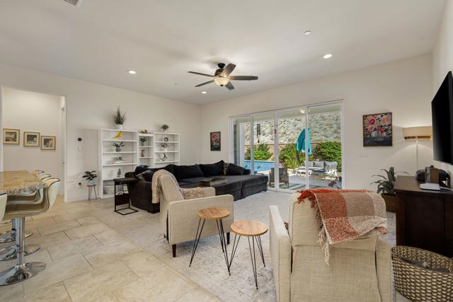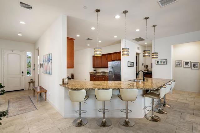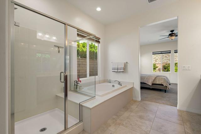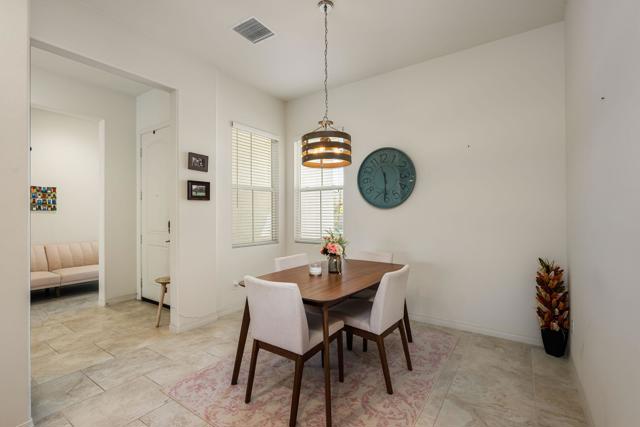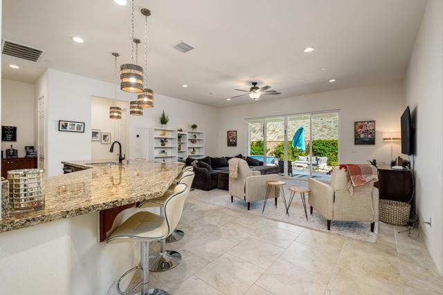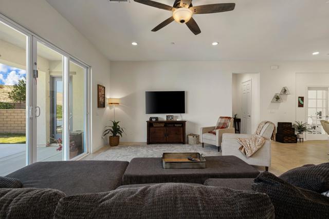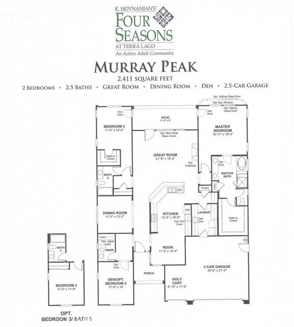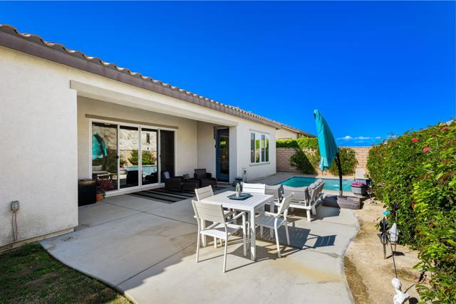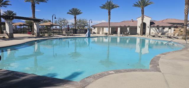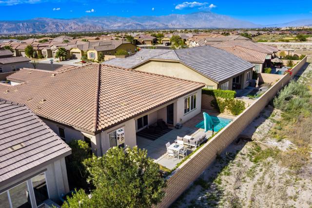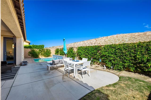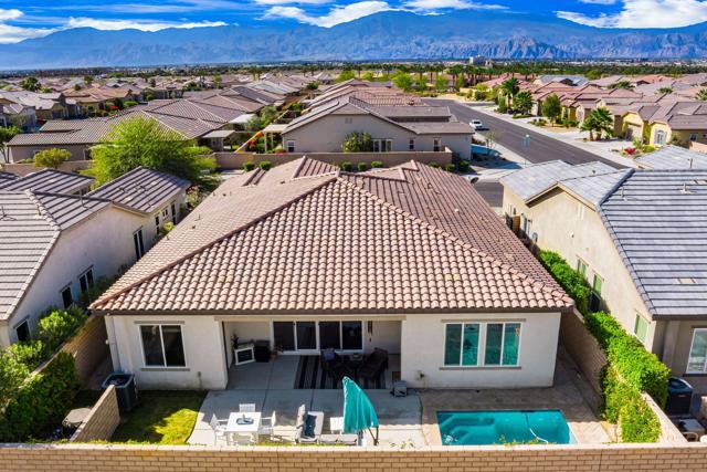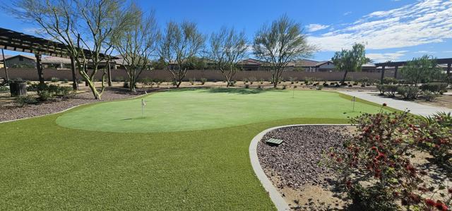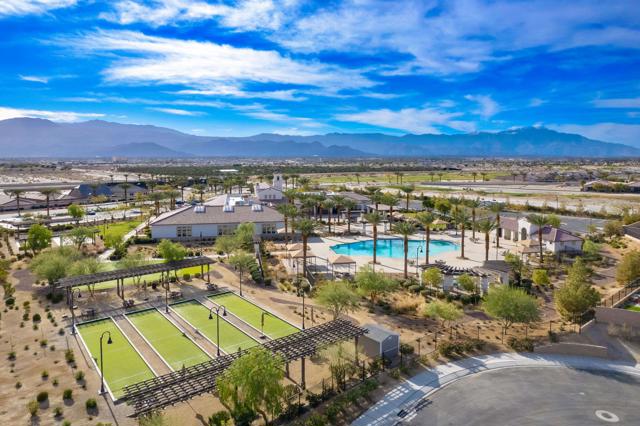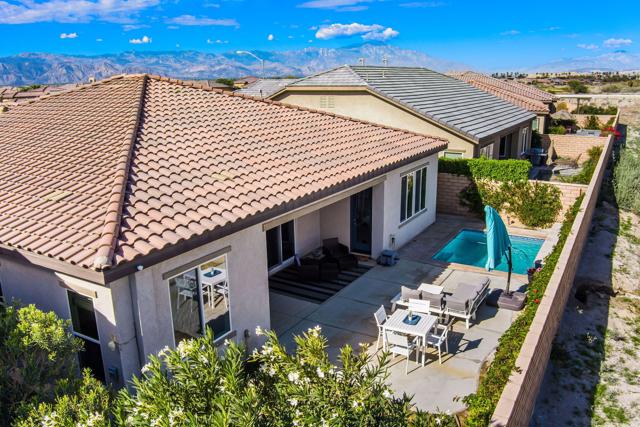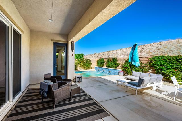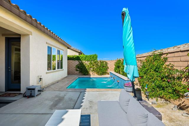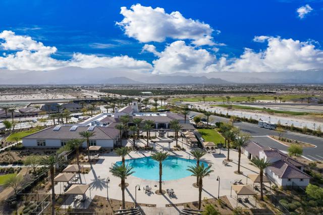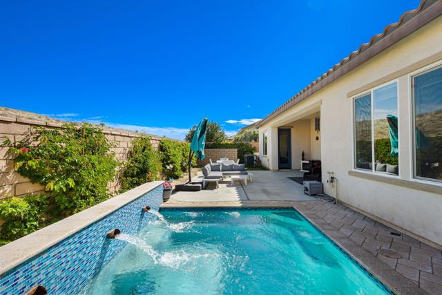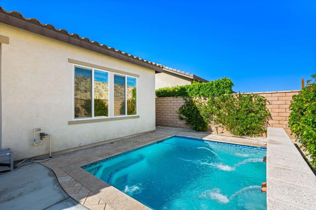 Indulge in elevated 55+ living in this 3-bedroom plus den home inside Four Seasons at Terra Lago. Offering 2,411 sq ft, this thoughtfully designed residence features two private en-suite bedrooms for ultimate guest comfort, plus a versatile den ideal for a home office or reading retreat. The true showstopper is the private backyard oasis with a heated and chilled saltwater Spool, complete with built-in seating, therapeutic jets, and a tranquil water feature, perfect for relaxing year-round, whether enjoying cool desert evenings or refreshing summer days. Resort-style living continues at the impressive 22,000 sq ft Lodge clubhouse. Enjoy indoor and outdoor pools, hot tub, tennis, pickleball, bocce ball, basketball, billiards, a state-of-the-art fitness center, aerobics and yoga studio, and two 18-hole championship golf courses. A full calendar of activities, including cooking classes, arts and crafts, casino nights, and paint-and-sip events, creates a vibrant, active lifestyle. Luxury, relaxation, and community all in one exceptional home.