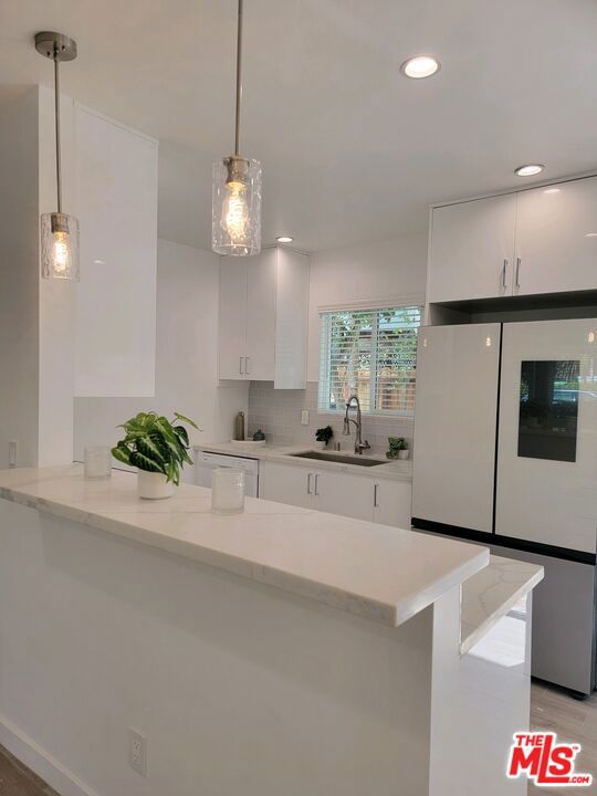 Tucked just 5 blocks from Abbot Kinney and 8 blocks from the beach, this beautifully renovated 2-bedroom, 2-bathroom residence offers rare privacy, abundant outdoor space, and true Venice charm within an intimate 4-unit building. The bright, open living space features wide plank flooring, recessed lighting, and oversized windows that fill the home with natural light. The modern kitchen includes quartz countertops, custom cabinetry, stainless steel appliances, and clean contemporary finishes. Both bathrooms have been thoughtfully updated with sleek vanities, modern tilework, and glass shower enclosures. Spacious bedrooms offer generous closet space and a light, airy feel. Step outside to your own expansive private patio and grassy yard retreat, perfect for outdoor dining, relaxing, or enjoying time with your dog. This is indoor-outdoor living at its best. Additional features include:* Private parking* In-unit washer and dryer* Large private patio plus side yard* Rent Stabilization Ordinance protection* Boutique 4-unit building* Prime Venice location. Enjoy walkable access to Abbot Kinney's restaurants, boutiques, and the beach just minutes away.