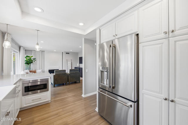 Located in the highly sought-after Wildwood neighborhood of Thousand Oaks, this beautifully updated four-bedroom home blends style, comfort, and scenic surroundings on a large corner lot. A stunning new double-door entry opens to the formal living room featuring vaulted ceilings, custom lighting, and an elegant dining space.The recently remodeled gourmet kitchen showcases white cabinetry, quartz countertops, a glass subway tile backsplash, farmhouse sink, custom lighting, countertop seating, and stainless steel appliances including a gas range with hood, double oven, microwave, and dishwasher. The adjoining family room offers an inviting space filled with sunlight to relax while taking in picturesque backyard and breathtaking mountain views.Additional upgrades include designer interior paint, newer bamboo flooring, a refinished fireplace, dual-pane windows with plantation shutters, central A/C, closet organizers, recessed lighting, and a new electrical panel with EV charging in the garage.Step outside to your resort-style backyard oasis--perfect for entertaining--featuring a built-in BBQ with bar seating, outdoor gas fireplace lounge, private spa, custom lighting, and drought-tolerant designer landscaping. Enjoy mornings with a cup of coffee in the spa while looking at the fog over the Santa Monica mountains. Situated on a private corner cul-de-sac lot with an attached oversized two-car garage.Enjoy the very best of Conejo Valley living with nearby hiking trails like Wildwood Regional Park and Paradise Falls, award-winning public schools, premier shopping and dining, and convenient access to the 101 freeway--all just minutes away and 26 short miles to LA city.