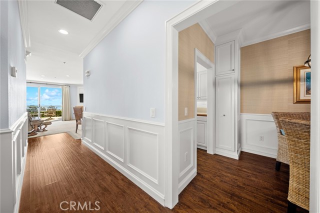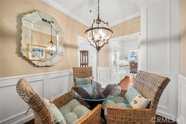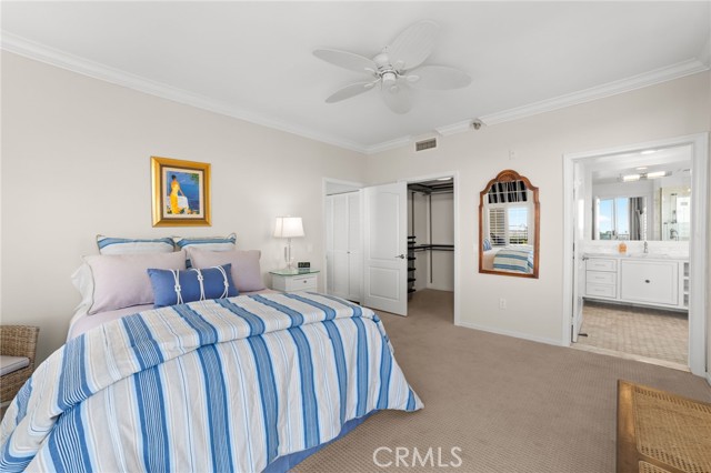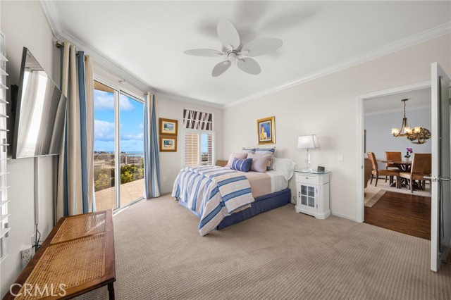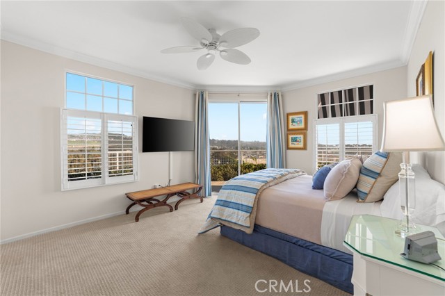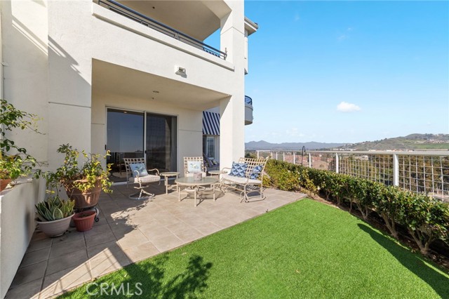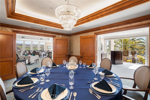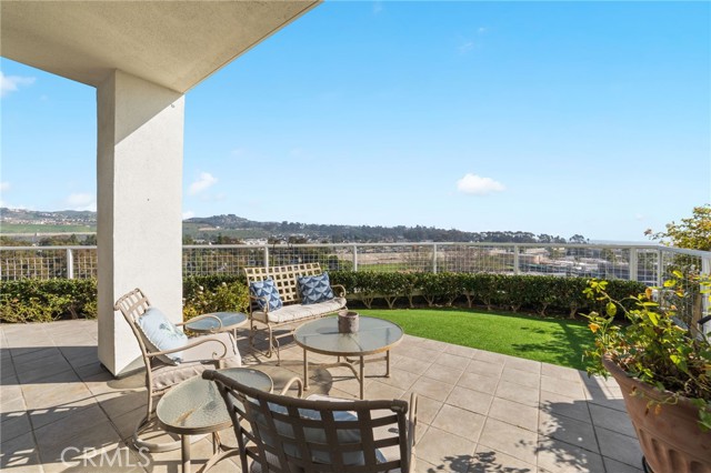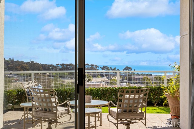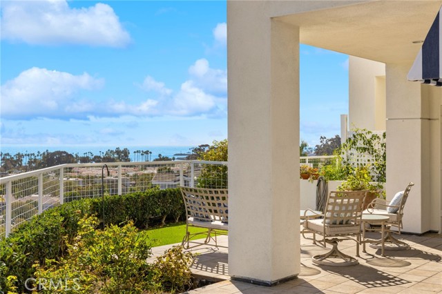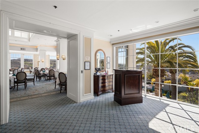 Discover coastal elegance in this premier ground-floor OCEAN-VIEW residence at The Sea Bluffs, an Ivy Signature Community and Dana Point’s premier 62+ retirement destination. This spacious two-bedroom home offers effortless accessibility and stunning white-water views of the Pacific Ocean and Dana Point Harbor. Upon entry, sightlines extend through expansive living room sliding doors directly to the ocean, creating a bright and serene first impression. The open-concept living and dining areas flow seamlessly to a large wrap-around patio with tiled spaces ideal for al fresco dining or relaxation. This beautiful outdoor retreat is framed by a lush turf lawn and rose garden for low-maintenance, pet-friendly outdoor living, complemented by a generous built-in storage closet with shelving. Inside, elegant custom upgrades include rich dark wood flooring in main living areas, crown molding throughout, custom wainscot paneling in the foyer and breakfast room, and a living room fireplace with custom panel detailing. The kitchen features upgraded GE Profile appliances and a built-in pantry with pull-out storage, while the adjacent breakfast room offers plantation shutters and grasscloth wallpaper. The fully remodeled, spa-inspired primary bathroom is a standout, featuring a large curbless shower with frameless glass, grab bars, dual wall and ceiling shower heads, marble accents, a double marble-top vanity, custom linen storage, and a premium Toto Neorest Washlet bidet toilet. The primary bedroom includes newer carpeting, plantation shutters, a custom Elfa closet system, and a wall-mounted TV for easy move-in. A second bathroom offers a walk-in tub, and the oversized second bedroom functions easily as a guest room, den, or office with hillside views. An in-unit washer and dryer add everyday convenience. Residents enjoy fee-simple ownership and resort-style amenities, including meals, housekeeping, 24/7 security, maintenance-free living, all community classes and social activities and close proximity to Dana Point Harbor, beaches, dining, and coastal trails—making this a rare, prime ground-floor offering. PLEASE NOTE THE MANDATORY COMMUNITY MONTHLY SERVICE FEE OF $5,910, as well as MONTHLY HOA of $670, SECOND OCCUPANT FEE of $2,100 applies, if applicable.