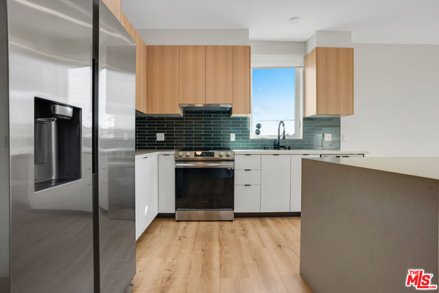 Step into refined contemporary living in this beautifully designed 2-bedroom, 2-bath residence ideally located in the heart of Hollywood. Newly built with thoughtful craftsmanship and modern finishes throughout, this top floor unit offers the perfect blend of style and comfort. The open-concept layout showcases hardwood floors, soaring ceilings, and oversized windows that flood the space with natural light while opening seamlessly to a private front balcony with city views. The sleek kitchen features stainless steel appliances, soft-close oak cabinetry, and a striking glass subway tile backsplash ideal for both everyday living and entertaining. The spacious bathrooms include a soaking tub complemented by matte black fixtures, creating a spa-inspired retreat. Additional highlights include in-unit laundry, a smart thermostat, secured parking with EV charging, and quality finishes throughout. Residents enjoy access to a stunning rooftop deck with 360-degree panoramic views of the city skyline and the iconic Hollywood Sign. A dedicated on-site dog run offers added convenience for pet owners. Perfectly positioned between Hollywood and Larchmont, this prime location provides effortless access to some of Los Angeles' best dining, shopping, entertainment, major freeways, and public transit delivering the very best of contemporary LA/Hollywood living. ***The list price is based off one (1) month free concession (applied all at once) being factored into the base rent of $3850 due monthly to show the savings.***