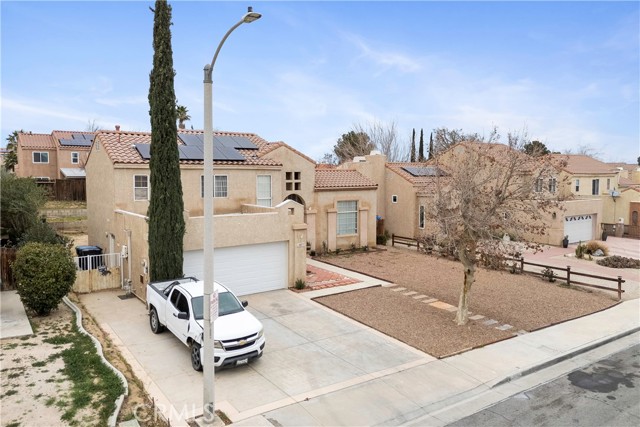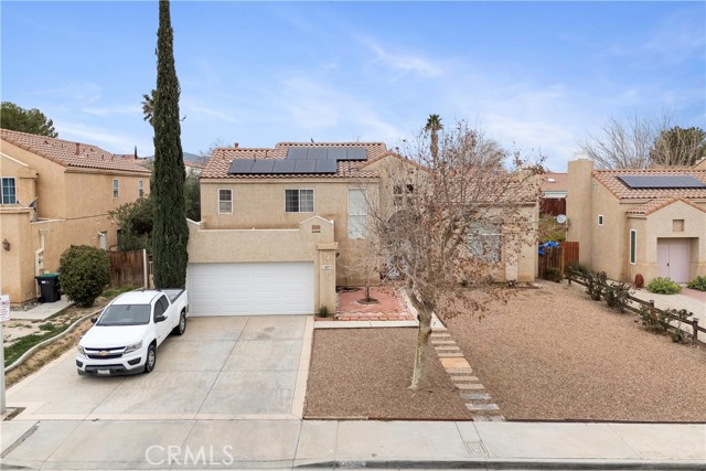 Don't miss your chance to own this beautiful home located in a highly desirable neighborhood in Palmdale, CA, and offers the space and flexibility all buyers want. This inviting two-story home features approx. 1,846 sq ft with 4 bedrooms and 3 bathrooms, including a convenient downstairs bedroom and bath, perfect for guests, a home office, or multigenerational living. Enjoy a bright and spacious formal living room with a cozy fireplace, plus a separate family room, a formal dining room, a kitchen, an indoor laundry room, with a direct-access to a 2-car garage. Step outside to a large backyard with a large covered patio ready for BBQs and a space that would be great for entertaining. Additional highlights include central heating/air and solar for potential energy savings. The home is also conveniently located near schools and some of Palmdale’s best amenities such as the DryTown Water Park at Palmdale Oasis Park, shopping/dining at Antelope Valley Mall, events at the Palmdale Amphitheater, and has close commuter access to the freeways and via the Palmdale Transportation Center. Priced to sell! Look no further, your future dream home or investment property awaits you!