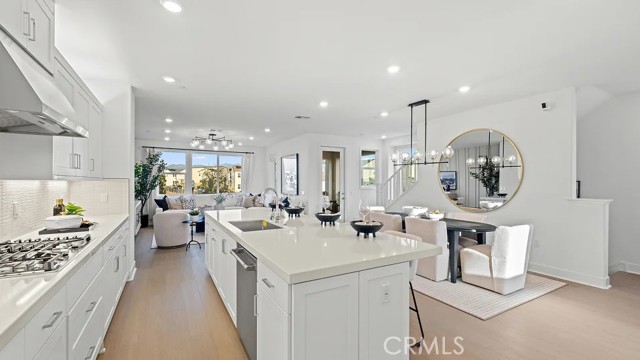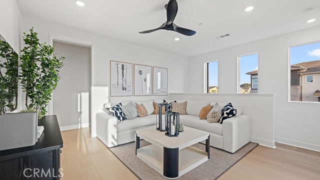 At Great Park's newest home collection RHEA, the plan 4 home features a rare dual primary suite layout, ideal for multi-generational living or a private home office. The second floor showcases an entertainer’s kitchen with an extra-long island, walk-in pantry, laundry room, and balcony. The third floor offers a spacious loft perfect for kids or media space, two secondary bedrooms, and a large primary suite. A flexible, well-designed home built for modern living. Just a short walk to a stunning 13-acre park. Beautiful and bright street-facing, CORNER location, offering easy guest parking.