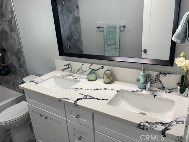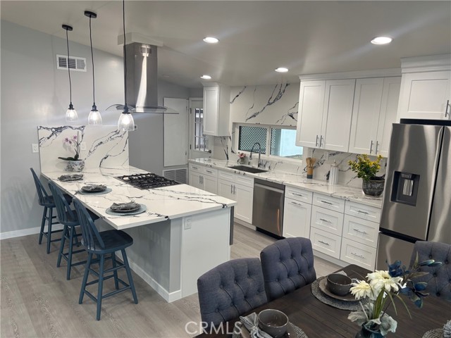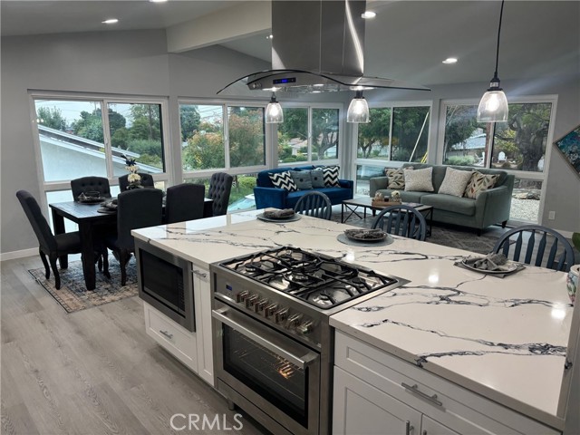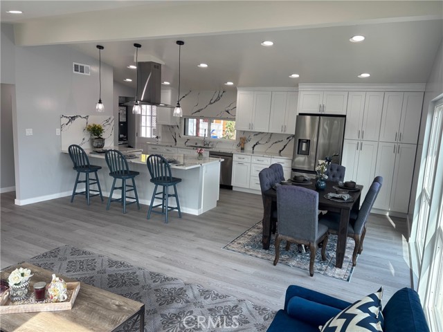 Your dream home awaits. Extensive remodel just completed on this Beautiful single level 4-bedroom 2-bathroom ranch home located in Rolling Hills Estates. Larga Vista is a quiet and prestigious neighborhood where the lots are large, and the neighbors are friendly. NEW FEATURES are Limited lifetime guaranty cool roof, 200-amp electrical service panel, Electrical rewire with LED lighting, new plumbing systems, Tankless water heater, Heating and AC with new ductwork, Dual pane windows, Luxury vinyl waterproof plank flooring, and Shaker style solid core interior doors. The new open concept kitchen includes White self-closing shaker style cabinets, Quartz countertops and new Stainless-steel appliances (refrigerator, 5 burner range, Island hood, Dishwasher, and Microwave). The new bathrooms include double sinks and deep soaking acrylic bathtubs. The primary bedroom has an ensuite bathroom. All bedrooms have large double mirror sliding closet doors. Front yard is landscaped with drought tolerant plants. Detached 2 car garage is located in the back with a long concrete driveway that can park 4 cars. Also in the backyard is a nice size shed to store all of your things.
