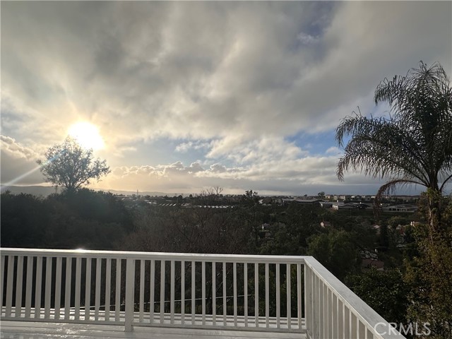 Spectacular panoramic sunset views from this gorgeous home stretch across the canyon an even include even the ocean and the mountaintops of Catalina Island from the gigantic deck off the primary suite! This 3-bed, 2.5-bath, 1,662 sq ft home features soaring two-story ceilings, newly updated level floor plan, and new windows throughout. Primary suite with dual vanities, tub enclosure and walk-in closet. Mirrored wardrobes in secondary bedrooms. Kitchen with breakfast bar open to family room. Direct-access two-car garage. Large landscaped front and back yards (front includes EZ care artificial turf!) But the star of the show is this view!! Don't miss this one!