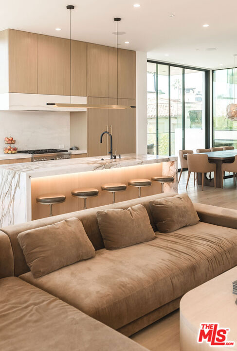 WORLD CUP - MINIMUM ONE MONTH RENTAL (Minimum 30 consecutive days between June 12-July 31st). Experience exceptional coastal living in this stunning custom modern estate in Manhattan Beach. Unique privacy and custom construction set this home apart. This light filled home features 5 bedrooms plus a private office, 4.5 bathrooms, and a seamless multi level layout designed for both luxury and comfort. The lower level offers a spacious secondary living area with floor to ceiling glass and direct access to the backyard retreat, complete with a resort style pool, spa, outdoor BBQ, and stylish bar area, creating the ultimate indoor outdoor entertaining space. The main living level showcases an expansive open concept great room with walls of glass, a designer kitchen with oversized island and premium appliances, and access to a private outdoor patio featuring comfortable lounge seating and a fire pit, perfect for relaxing and enjoying coastal evenings. Additional levels offer spacious secondary bedrooms, a private office, and a serene primary suite with large sliding doors and a spa inspired bath. High ceilings, modern finishes, wide plank flooring, and abundant natural light complete this exceptional home. Ideally located close to the beach, dining, shopping, and major World Cup venues, this is a rare opportunity to enjoy Manhattan Beach living at its finest.