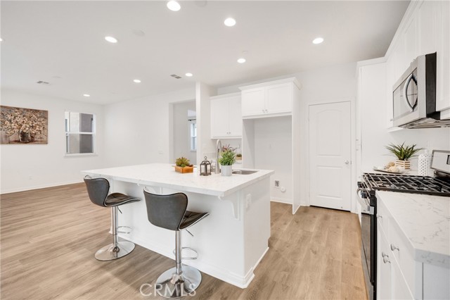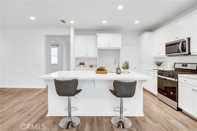 Located at 10532 Wilding, Rancho Cucamonga, CA 91730, this elegantly upgraded DETACHED residence is situated within the highly desirable “The Bungalows” at Terra Vista community, offering the privacy and distinction of a true single-family home with the added benefit of low property taxes and low special assessment—a rare and valuable advantage. Meticulously maintained and presented in near-new condition, the home reflects a refined balance of contemporary design and everyday comfort. The thoughtfully designed floor plan features generous ceiling heights, recessed lighting, and designer ceiling fan fixtures, creating a bright and sophisticated interior. At the center of the home, the kitchen combines modern elegance with exceptional functionality, showcasing shaker-style cabinetry with soft-close detailing, granite countertops with a full-height backsplash, a substantial center island ideal for casual dining or entertaining, and premium stainless steel appliances including a self-cleaning oven. Sliding glass doors open to a private rear courtyard, offering an inviting outdoor retreat and direct access to the detached two-car garage. The upper level features a well-appointed primary suite with dual vanities, granite countertops, a spacious shower, and a generous closet. Additional highlights include a secondary bathroom with a tub-and-shower combination, an upstairs laundry room, and a versatile downstairs den suitable for a private office, guest suite, or additional bedroom. Enhanced with modern efficiencies, the home includes owned solar panels, fiber-ready internet, Amazon Smart Home compatibility, a whole-house fan, and a tankless water heater—providing comfort, sustainability, and long-term value. Residents enjoy access to an impressive array of resort-style amenities, including a contemporary pool and spa, fitness center, sport court, clubhouse, fire pit, and outdoor entertaining areas. Ideally located near Victoria Gardens, with close proximity to premier shopping, dining, entertainment, and major freeways, this residence offers an elevated lifestyle in one of Rancho Cucamonga’s most desirable communities. An exceptional opportunity combining refined living, long-term savings, and prime location.