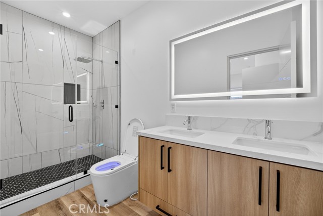 WELCOME TO YOUR NEW DREAM HOME! Newly built modern residence showcasing premium, high-end finishes and sophisticated design throughout. This thoughtfully designed home features an open-concept floor plan with custom contemporary cabinetry, oversized designer vanities, and beautifully upgraded bathrooms complete with frameless glass shower enclosures and smart toilets with integrated bidets. The chef-inspired kitchen is equipped with fully smart, high-efficiency stainless steel appliances, complemented by an in-unit smart washer and dryer for maximum convenience and energy savings. Enjoy customizable three-mode lighting throughout the home, illuminated smart bathroom mirrors, and a smart HVAC system designed for optimal comfort and efficiency year-round. Step outside to a private, fully finished yard with low-maintenance artificial turf—perfect for relaxing or entertaining. Additional highlights include two tandem parking spaces, professional gardener service, and a gated property offering privacy and security. A rare blend of modern luxury, technology, and convenience. CALL TODAY, AND ASK ABOUT OUR MOVE IN SPECIALS. THIS UNIT WILL NOT LAST!