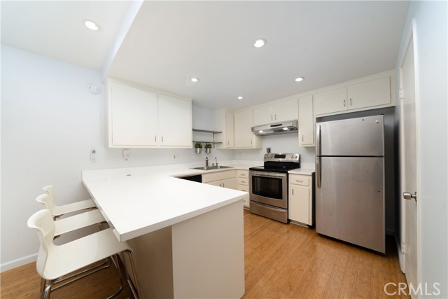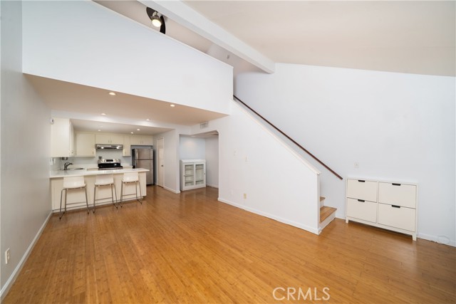 A must-see, move-in ready townhouse in the North Point community. Small complex in an excellent neighborhood of Fullerton. This unit features 1 bedroom and 1 bathroom with no one below or above, townhouse-style. Cathedral ceilings, recessed lighting, and bamboo flooring throughout. Spacious living room and a large room next to the kitchen that can be used for storage or as a walk-in pantry. Walk-in closet in the upstairs bedroom. Large front patio, perfect for entertaining or pets. Close to the pool and clubhouse. Walking distance to shopping, parks, and schools. HOA includes water, trash, clubhouse, and pool. Conveniently located near California State University, Fullerton.