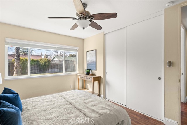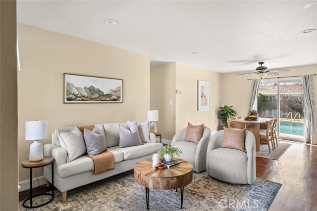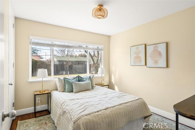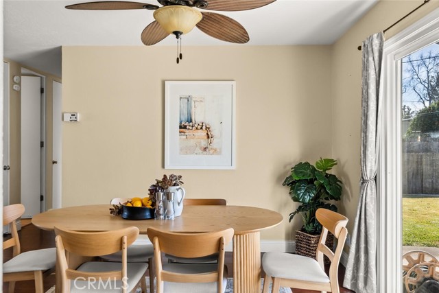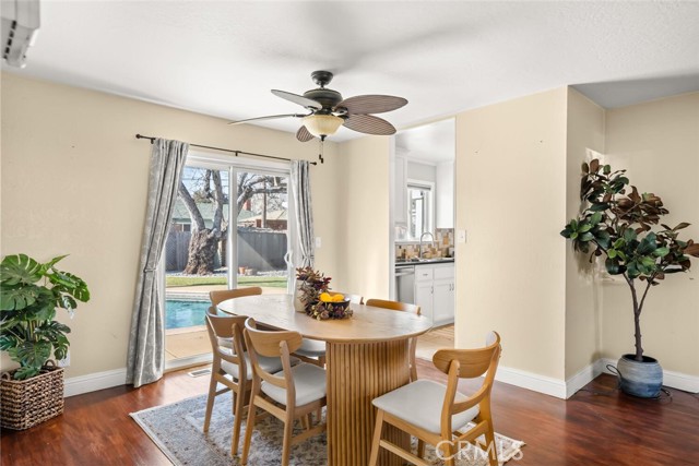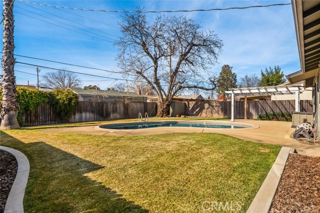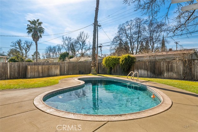Located in a quiet neighborhood, this clean and move-in-ready 3-bedroom, 2-bath home is full of charm WITH A POOL! Step inside to a light-filled living room featuring rich hardwood flooring, recessed lighting, and a beautifully tiled wood-burning fireplace. The space flows seamlessly into the separate dining area, complete with a sliding glass door leading to the backyard and pool—perfect for indoor-outdoor living. The kitchen offers granite countertops, a stone tile backsplash with warm mosaic tones, stainless steel appliances, a gas range, and ample storage in crisp white cabinetry. A cozy breakfast nook includes an additional sliding glass door opening to the patio beneath a charming white pergola. All three bedrooms feature hardwood floors and closets. One bedroom includes an en-suite bathroom with a walk-in shower, while the guest bathroom offers a convenient shower/tub combination. The fully fenced backyard is ideal for relaxing and entertaining, featuring an in-ground pool with safety fencing, a large concrete patio, lush green grass, and a mature English walnut tree providing generous shade. This true charmer is conveniently located near Pleasant Valley High School, Upper Park, shopping, In Motion Fitness, and offers easy freeway access. A wonderful opportunity to enjoy comfort, convenience, and classic appeal.