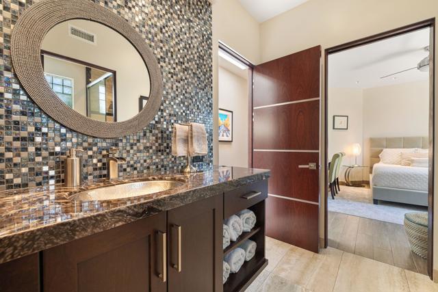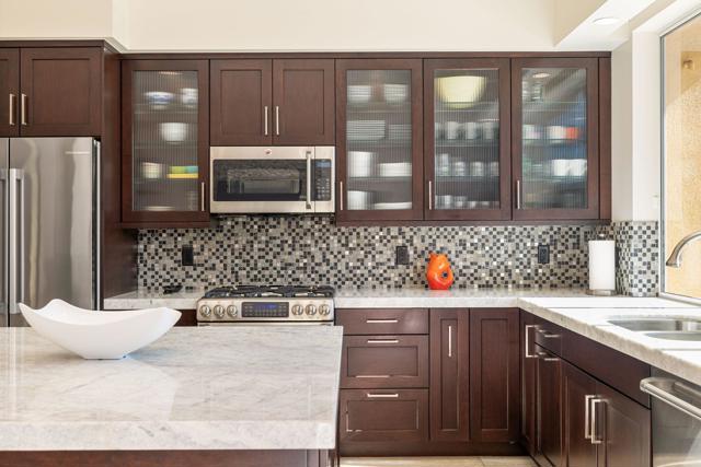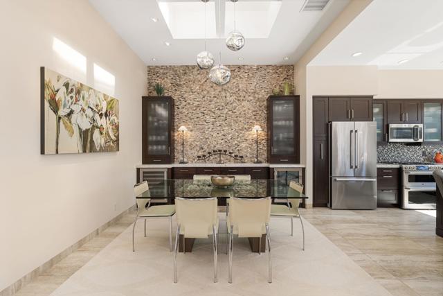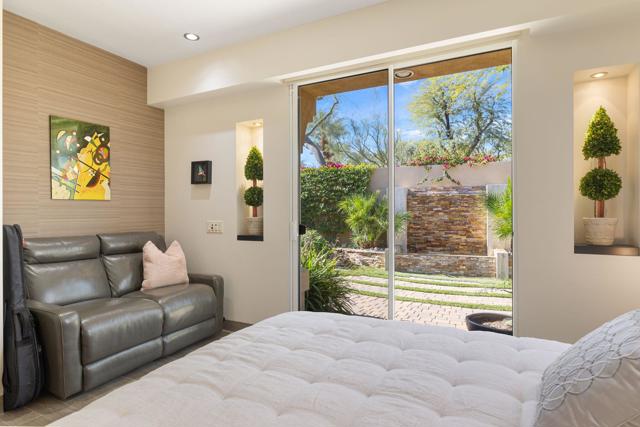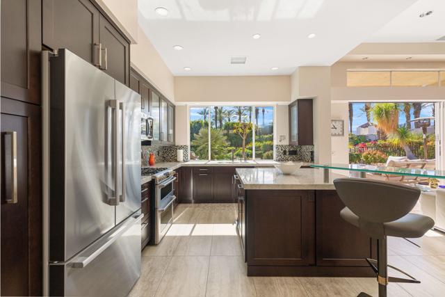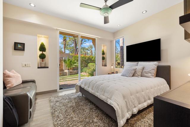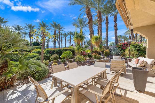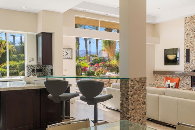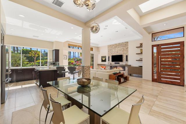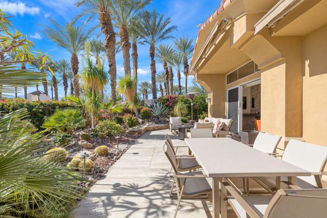 A rare opportunity to own a completely reimagined, contemporary Acacia 3 on a large premium south-facing lot in Indian Ridge. Designed for effortless desert living, this 3 bedroom, 2 bath residence was remodeled from the studs with walls removed to create a sophisticated open-concept great room filled with natural light and seamless indoor-outdoor flow. Major upgrades include new HVAC (2023), new water heater (2023), new Bosch refrigerator (2024), reverse osmosis water system, and a new golf cart (2024) included in the sale. No detail was overlooked--featuring designer lighting, custom interior and exterior doors, tile flooring throughout, remote shades, stack stone accents, pavers, awnings, and beautifully finished patio surfaces. Two serene, ultra-private patios with fire pit and tranquil water features create a true resort ambiance, perfect for morning coffee, sunset gatherings, or relaxed evenings under the desert sky. Offered furnished per inventory list, including contemporary furnishings, artwork, accessories, and kitchenware. Elevated, modern, and move-in ready, an exceptional Indian Ridge lifestyle awaits. Club Membership available with no wait and Golf Membership available via waitlist.