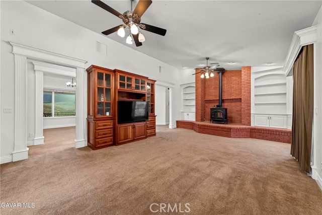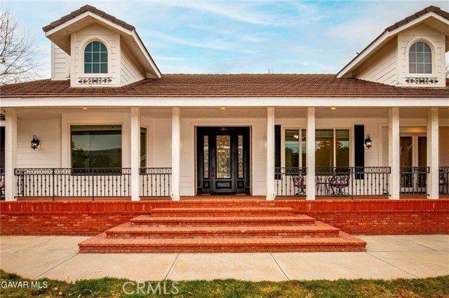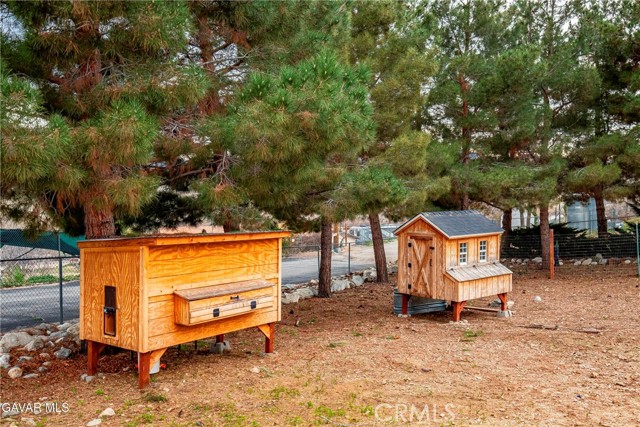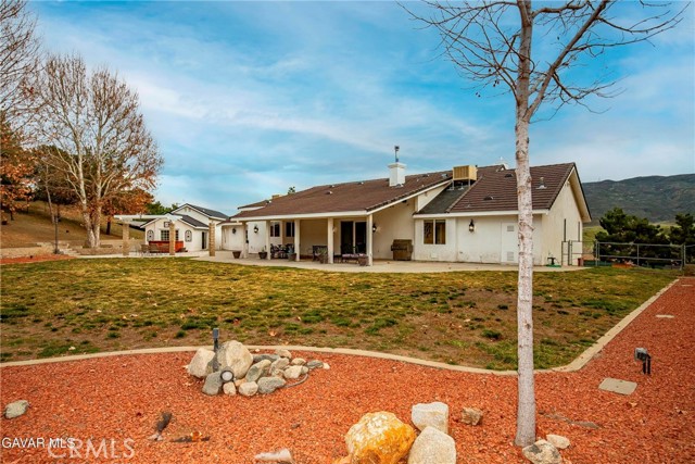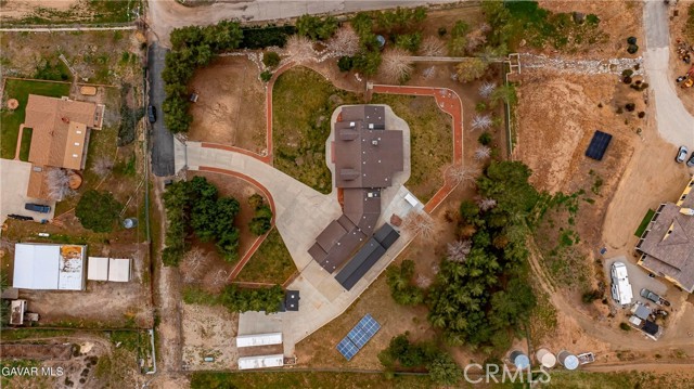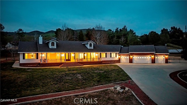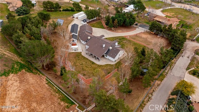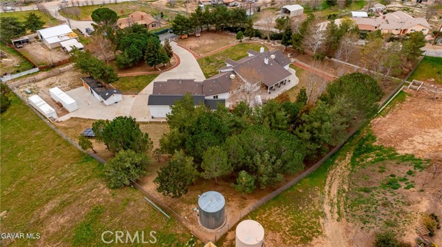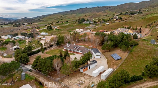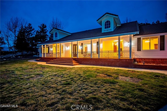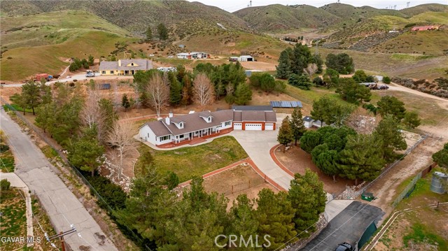 GORGEOUS SINGLE STORY CUSTOM HOME IN CHARMING LEONA VALLEY! Don't miss this Private Oasis on 2.5 Acres of all useable Property. A Private Location yet 15 minutes to Palmdale & the Freeway & 30 minutes to Santa Clarita. AMAZING VIEWS & HIGH END FINISH! This Impressive Home features a Covered Porch from which to enjoy the View across the front of the house. You will be impressed from the moment you enter thru the Custom Door with Matching Side Lights. There is Wide Crown Molding, Wood Casings/Sills & High Ceilings thruout. The Formal Living Room with Cozy Fireplace and Formal Dining are great for entertaining. And there is a Huge Family Room with Builtins & a Woodstove. The Lovely Chef's Kitchen has Custom Cherry Cabinets, Granite Countertops, Stainless Appliances including Double Ovens & Refrigerator stays. There are lots of Pantry Cabinets & an Office Nook. The Master has a Walkin Closet and an Elegant Master Bath with Dual Sinks, Spa Tub & Separate Shower. The Laundry Room has a Sewing/Desk built in. An Exercise Room with closet could be 4th Bedroom. There is a Detached Private Office also. The Covered Patio across Back of House is great for the Family & Entertaining. The Spa stays. You'll love the Lovely Mature Landscaping. 150 Mature Trees create a Parklike Feel. The Attached 4 Car Garage is 1800sf and extra deep with 2 of doors 9ft. Plus there is a 48ft long,1600sf RV Garage with 50amp Hookup. There are 2 RV Dumps. You'll appreciate the 36 paid for Solar Panels. The 200 amp Panel. The Private Well plus AVEK hookup for low cost water. 2 Water Storage Tanks. (2)40ft Conex storage containers are on slab & set up for equipment/tool storage & 4 other enclosed storage spaces. Property is fully fenced with Electric Rolling Entry Gate with Keypad & Remote Entry Feature plus 2 other Gates. There is Extensive Cement Work--about 13,000sf! Plus Security Lights. You'll fall in love with this home and the Tranquil, Private Location with its Great, FRIENDLY SMALL TOWN FEEL!