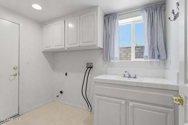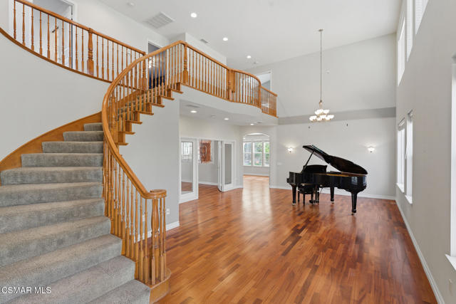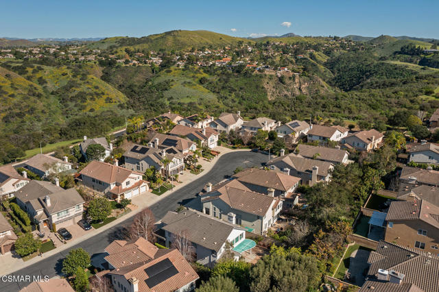 Situated on a private cul-de-sac within the 24-hour guard-gated community of Rancho Conejo, this spacious 4 bedroom, 4 bath residence offers an exceptional floor plan and incredible potential with over 3100 square feet. All four bedrooms are located upstairs, providing ideal functionality. An additional room downstairs is currently used as an office and offers flexibility for guests or additional living space.Vaulted ceilings and recessed lighting create a bright, open feel throughout the home. The kitchen features a generous center island, separate dining area, and ample cabinetry, flowing seamlessly into the main living spaces. A dedicated laundry room and direct access to a three car garage add convenience and practicality. Dual HVAC systems provide year-round comfort. The backyard offers a private outdoor setting with space to relax, entertain, or personalize to your vision. Residents enjoy access to two community pools, a clubhouse, and the privacy and security of 24-hour guard-gated living that Rancho Conejo is known for. Ideally located near parks, scenic trails, shopping, convenient freeway access, and award-winning schools within the Conejo Valley Unified School District, this home offers both lifestyle and location.