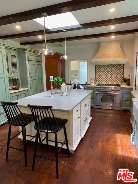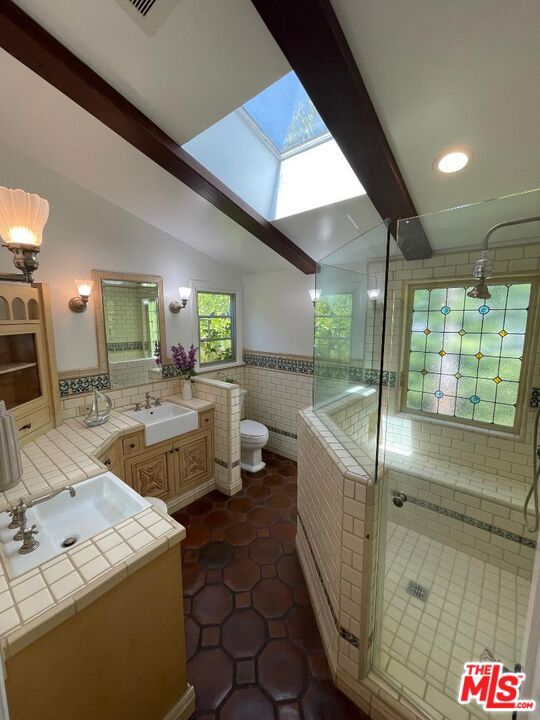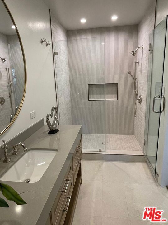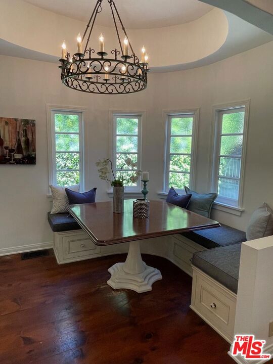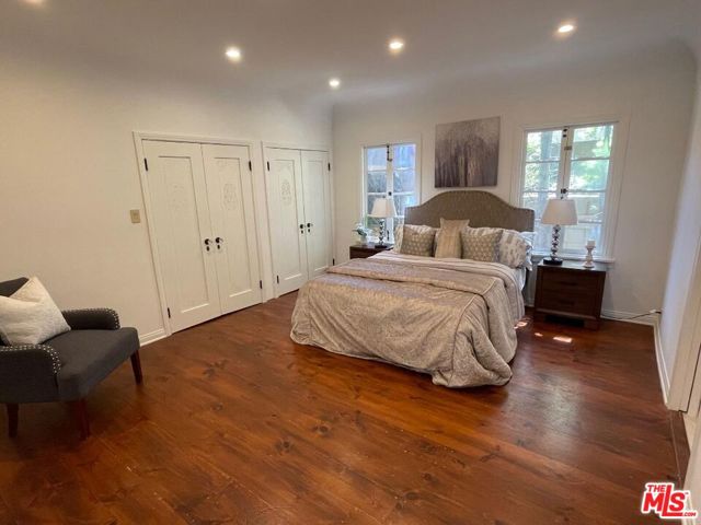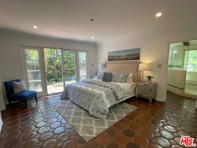 Remodeled old world Spanish w/ 3 bed + 3.5 baths PLUS large office/4th bdrm situated in a great Beverly Hills location. Open floor plan creates a light & airy flow from the spacious LR to the elegant DR, to the naturally lit brkfst area & gourmet kitchen all w/top of the line appl's & built into unique cabinetry. Warm colored encaustic & Malibu tiles, pine plank & terracotta tile floors, handcrafted wrought iron fixtures & a smooth stucco finished FP. The primary suite is spacious w/ large closet & bathroom w/dbl sink & a luxurious spa-like shower. Bdrm size room off of primary can be used as another bdrm, gym, office or nursery. Fenced in prvt grnds w/ spacious patio & an abundance of mature fruit trees. 4th bdrm is accessed through primary bedroom only. Close to downtown BH and with the impressive BHPD safety and award winning schools. Can be leased short or long term.