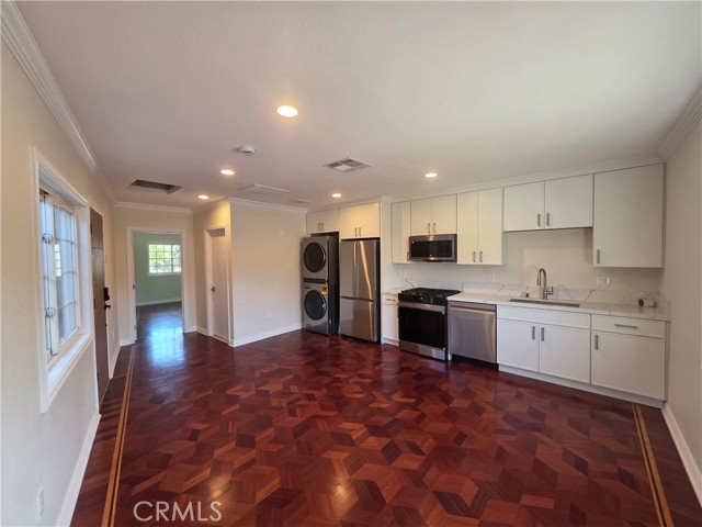 Main house can be rented with the ADU for and additional $7,495. Beautifully remodeled 1-bedroom ADU located in a quiet Granada Hills neighborhood with mountain views and private entry. This light-filled unit features modern finishes throughout, including recessed lighting, updated flooring, and a sleek contemporary kitchen with white cabinetry, quartz-style countertops, stainless steel appliances, and in-unit washer and dryer. The open living space offers flexibility for comfortable everyday living. The spacious bedroom includes ample closet space, and the fully renovated bathroom showcases a walk-in shower with designer tile and modern fixtures. Enjoy a private entrance, peaceful residential setting, and convenient access to shopping, dining, and freeway connections. Street parking available. A rare opportunity to lease a beautifully upgraded ADU in one of Granada Hills’ most desirable neighborhoods.