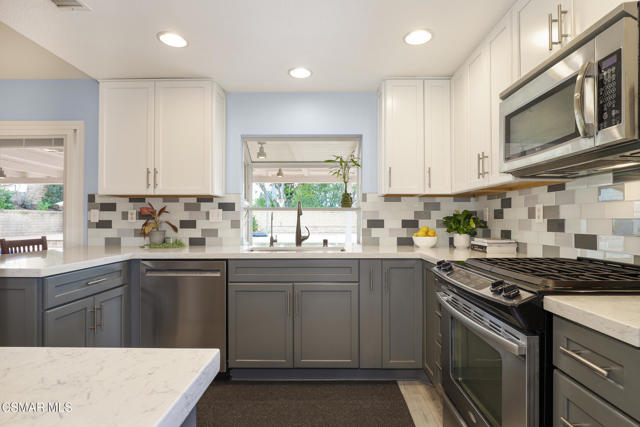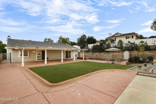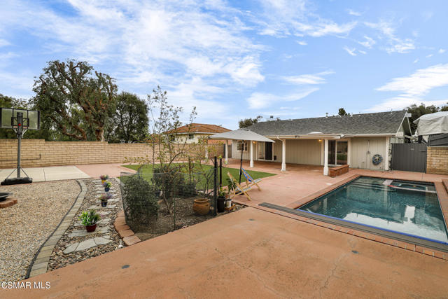 Welcome to 11 Corinne Drive -- where comfort, space, and possibility come together on a generous 10,454 sq ft cul-de-sac lot in one of Newbury Park's established neighborhoods with charming curb appeal!This beautifully maintained single-story 3-bedroom, 2-bath, 1548 sq. ft. home reflects years of thoughtful care and meaningful upgrades. At the front of the home, the living and dining area welcomes you with vaulted ceilings and a fireplace, creating an inviting focal point filled with natural light, ideal for gatherings, holidays, or quiet evenings at home.The heart of the home is the beautifully remodeled kitchen (2018), designed to be both functional and welcoming. With updated finishes and a layout that flows seamlessly into the main living areas, it offers the perfect balance of style and practicality. The kitchen sink overlooks the backyard and pool area, allowing you to enjoy views of the outdoor space while cooking or entertaining.The interior has been tastefully refreshed with updated flooring (2025), remodeled bathrooms (2022), and updated interior and exterior paint, creating a clean, cohesive feel throughout. A newer dishwasher and refrigerator (2024), washer and dryer (2021), updated water heater (2017), and a 40-year roof installed in 2011 further contribute to the home's long-term value.Everyday comfort is enhanced by a 3-zone HVAC system, sliding glass doors with built-in blinds, humidity-controlled primary bath ventilation, motion-sensor exterior lighting, and a Moen Flow Smart Water Monitor & Auto Shutoff System (2024).The expansive backyard is designed for both relaxation and recreation. Enjoy a heated in-ground pool and spa, outdoor shower, covered patio, and basketball play area. The pool features a safety cover, with a brand-new cover and track system installed in December 2025, adding both peace of mind and functionality.For added versatility, the property offers RV parking (approx. 44' L x 12' W) with full hook-ups (electric, water, and sewer dump). A substantial storage shed (approximately 7'L x 12'W x 9'H) provides generous space for hobbies, tools, or equipment, while a separate pool shed keeps outdoor storage organized and efficient.With over 10,000 square feet of lot space, the property may offer potential for an ADU or future expansion opportunities. (buyer to verify with the city/county).With no HOA and convenient access to local trails, parks, shopping, and dining, this home offers a rare combination of livability, flexibility, and future potential.11 Corinne Drive is more than move-in ready -- it's a home designed to grow with you and adapt to your needs for years to come.