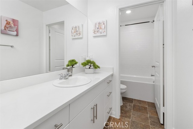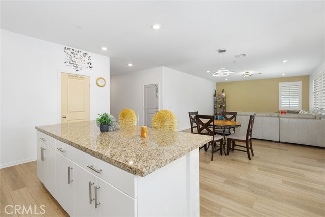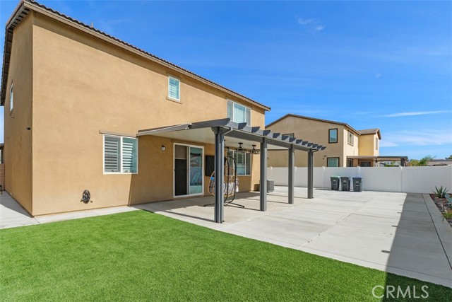 Welcome to Colt Ridge in Hemet – move-in ready and beautifully designed! This two-story home offers 4 bedrooms, 3 full bathrooms, and approximately 2,710 sq. ft. of living space with a 3-car garage. An extended concrete driveway and inviting front porch create great curb appeal. The flexible floor plan includes a main-level bedroom and full bathroom, ideal for guests or multi-generational living. The main level features upgraded tile flooring, along with updated light and ceiling fan fixtures throughout. The spacious Great Room flows seamlessly into the open-concept kitchen and dining area. The kitchen features a large center island, granite countertops, stainless steel appliances, and ample cabinetry. Sliding glass doors lead to the backyard with a covered patio, generous concrete area, and low-maintenance artificial turf. Upstairs includes a spacious primary suite with an en-suite bathroom and walk-in closet, plus a versatile loft, two additional bedrooms, a full bathroom, and an upstairs laundry room. Additional features include a Tesla charging station in the garage, a water softener and filtration system, and an energy-saving solar system. Colt Ridge residents enjoy access to a recreation center, pool, spa, and BBQ areas. Conveniently located near Diamond Valley Lake, shopping centers, dining, and entertainment, including Village West Shopping Center, Hemet Plaza, Hemet Mall, and Soboba Casino. Move-in ready and offering space, functionality, and community amenities — don’t miss this opportunity.