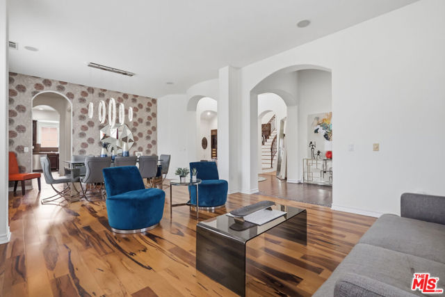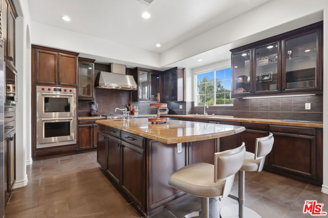 Beautiful entertainers property complete with pool, with Baja shelf and spa, sports court, multiple sitting/ entertaining areas with gorgeous views of the Santa Susana mountains and rockscape. The home features a first floor primary suite as well as two junior bedrooms downstairs with 1 & 3/4 baths. Upstairs are two junior en- suites and another family room. There are two garages, one single and one two car and a laundry room. Upon entering the formal entry one is greeted by the formal living and dining rooms leading to the oversized gourmet kitchen through the butlers pantry which connects to the large walk in pantry. The kitchen and adjoining family room look out to the pool, spa, grassy yard, sports court and open concept Casita with a 3/4 bath and closet. A nice, quiet street on a Cul de sac in Chatsworth.