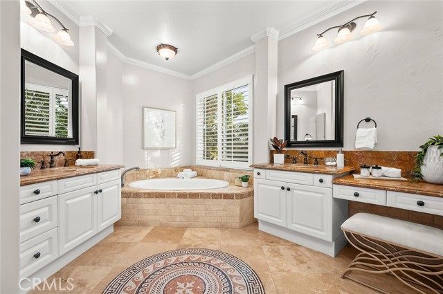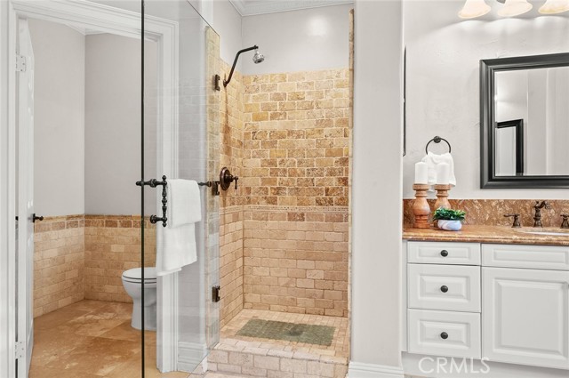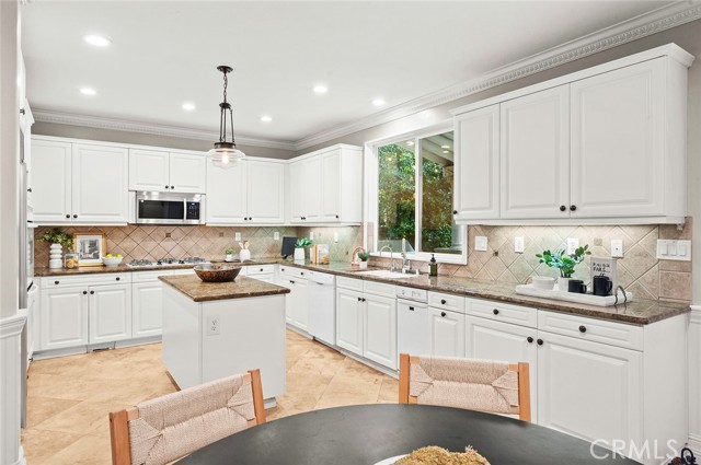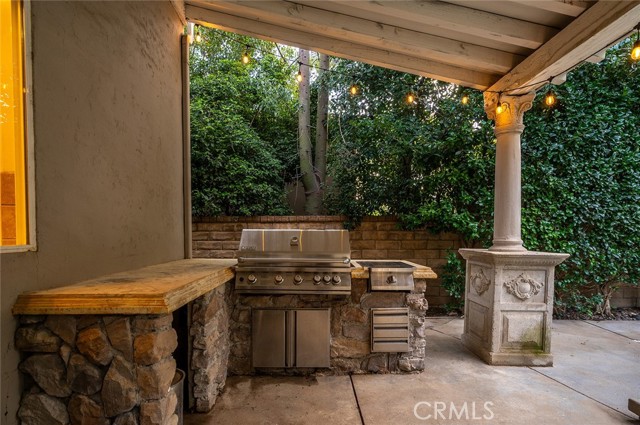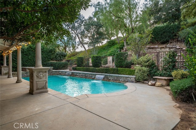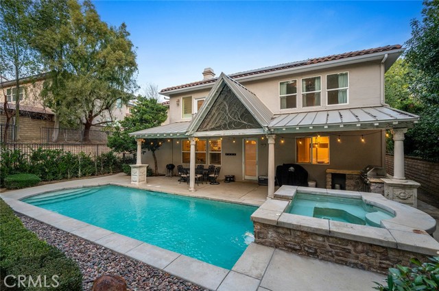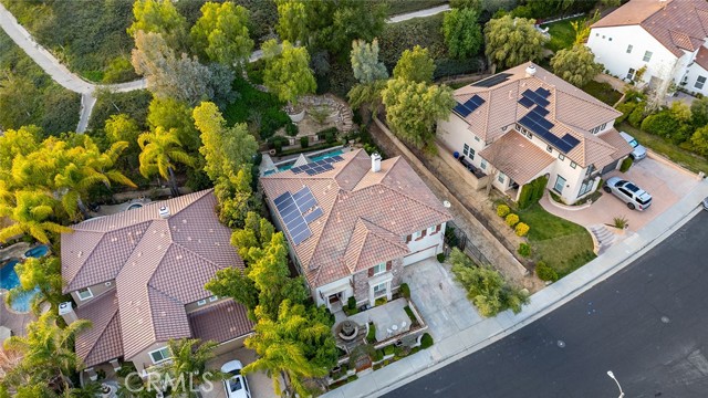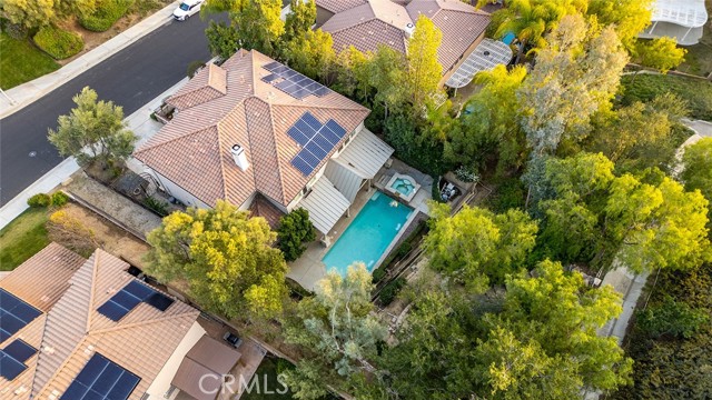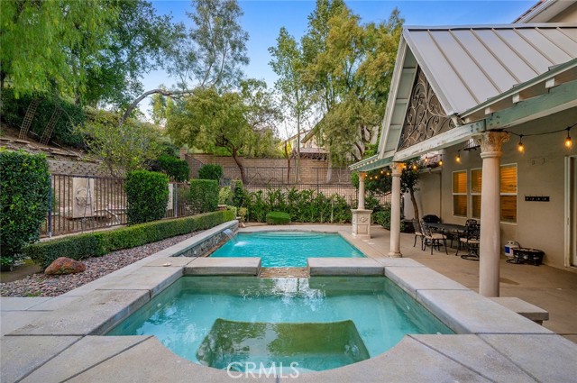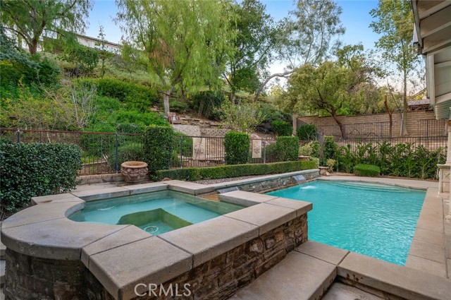 Tucked into the highly desirable Pacific Hills community, this home offers a private backyard retreat designed for entertaining, relaxing, and enjoying Southern California living year-round. This spacious 5-bedroom, 5-bathroom home offers approximately 3,724 sq ft of living space on an expansive 14,703 sq ft lot, combining comfort, functionality, and resort-style outdoor living. Step inside to soaring ceilings, travertine and hardwood flooring, abundant natural light, and a flowing layout ideal for both everyday living and hosting. The kitchen opens to the main living areas and features granite countertops, a large center island, generous storage, a built-in Sub-Zero refrigerator, and an inviting layout that creates a true gathering space at the heart of the home. In addition to the main living areas, a large bonus/game room provides flexible space ideal for entertaining, a media room, or a playroom. The backyard is where this property truly shines, designed for year-round enjoyment with a resort-style pool and spa with waterfall features, a covered patio for shaded dining and entertaining, a built-in outdoor kitchen with grill and burner, and multiple seating areas that create a private, park-like setting. Tiered landscaping, mature trees, and hillside pathways provide both privacy and character, making the yard feel like a personal retreat. Upstairs and throughout the home, generously sized bedrooms and well-appointed bathrooms provide flexibility for families, guests, or work-from-home needs, while high ceilings and thoughtful architectural details enhance the sense of space throughout. Additional highlights include paid-off solar panels, extensive hardscaping, outdoor lighting, and a three-car garage, along with a layout designed for both indoor comfort and outdoor living. Located within the William S. Hart Union High School District, with low HOA dues and no Mello-Roos, this home combines lifestyle, space, and value in a way that is increasingly hard to find, and homes with this combination of privacy, lot size, and outdoor living rarely come to market.