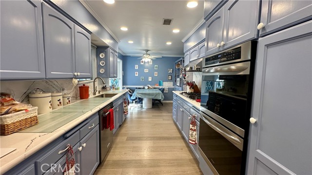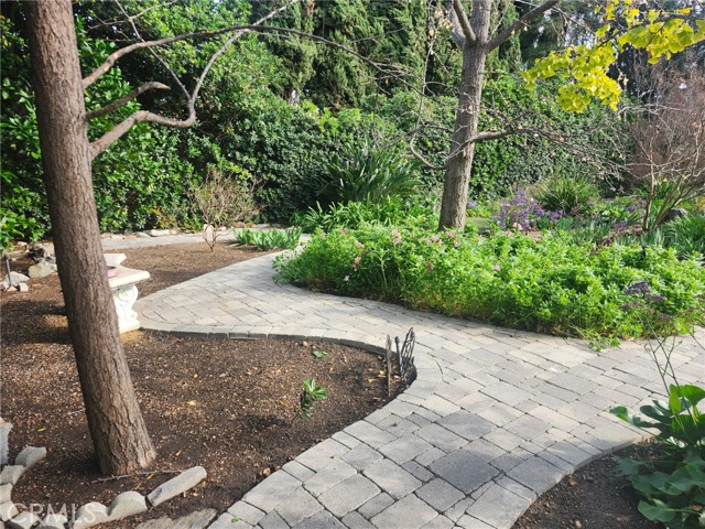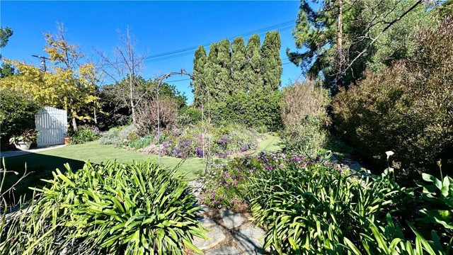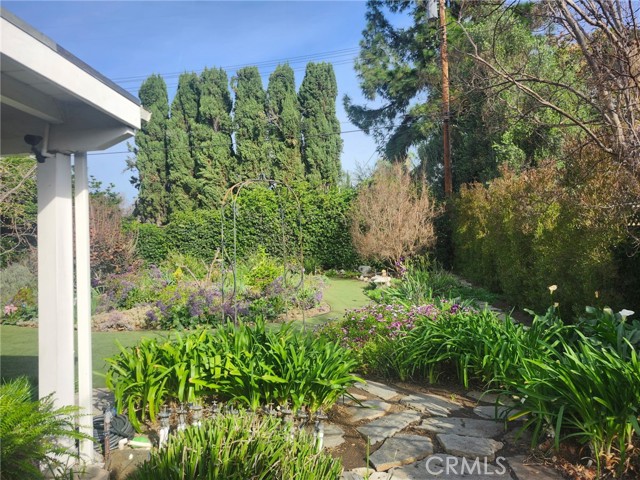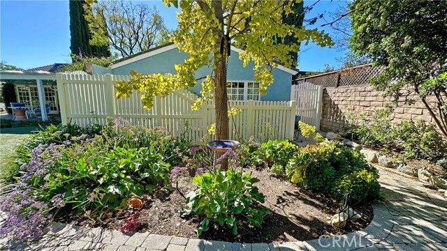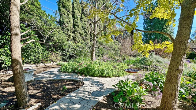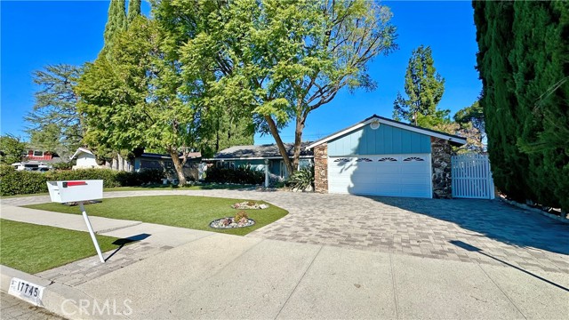 Welcome to 17745 Romar Street, nestled on an expansive 12,000+ sq. ft. lot with breathtaking park-like grounds, ideally located on a quiet cul-de-sac in the heart of Northridge. Situated within the highly sought-after Granada Hills Charter High School district, this single-story home offers the perfect blend of comfort, charm, and convenience. A stunning circular paver driveway creates impressive curb appeal and sets the tone for what awaits inside. This 4 bedroom, 2 bath residence features warm wood laminate flooring, a cozy fireplace in the living room, elegant French doors, and an expansive formal dining room/family room ideal for both everyday living and entertaining. The updated kitchen is thoughtfully designed with quartz countertops, abundant cabinetry, stainless steel appliances, a charming breakfast nook, and an oversized walk-in pantry - a dream for any home chef. The spacious primary suite offers a peaceful retreat, complete with a walk-in closet and a tastefully remodeled en-suite bath. Step outside to the true showpiece of this property - a spectacular backyard oasis that feels like your own private botanical garden. Lovingly curated and meticulously maintained, the grounds are bursting with vibrant flowering plants, mature greenery, and winding paver pathways that invite you to explore and unwind. The lush landscaping creates layers of texture and color, offering beauty in every direction and a sense of complete serenity. A large covered patio provides the perfect setting for outdoor dining, entertaining, or simply relaxing while enjoying the tranquil surroundings. Whether hosting gatherings or savoring a quiet morning coffee, this backyard is truly paradise in the Valley. Additional highlights include central air and heat, copper plumbing, dual-pane windows, a direct-access two-car garage with pull-down attic storage, and a driveway with potential RV parking. Ideally located just minutes from CSUN, parks, shopping, dining, and more.
