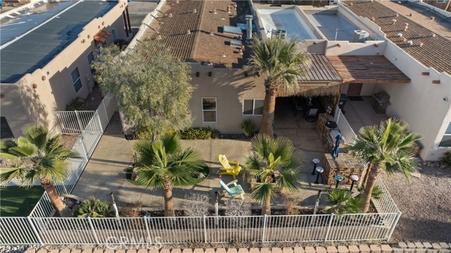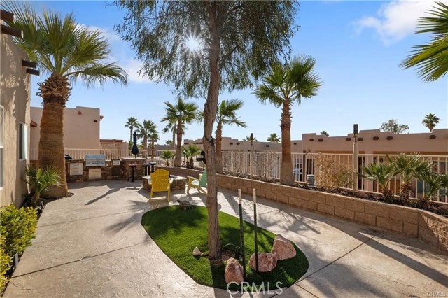 Welcome to the highly sought-after community of Rio Buena Vista — just steps from the water! This centrally located 2-bedroom + 1 spacious den or optional third bedroom complete with a cozy fireplace and skylight, and 2-bathrooms this home offers a versatile floor plan. The breathtaking kitchen remodel is truly the heart of the home, featuring a large island, pantry, breakfast nook, and modern amenities designed for both everyday living and entertaining. The primary suite offers a spa-like bathroom with dual sinks, a relaxing garden tub, and a separate walk-in shower. The guest bathroom also features a skylight, filling the space with natural light. Additional highlights include a separate formal dining room and an indoor laundry room for added convenience. Step outside into your private, fully enclosed backyard oasis — thoughtfully designed for entertaining and enjoying peaceful desert sunsets. Amenities include: • Covered patio • Built-in gas & charcoal BBQ island • Gas fire pit • Three gas tiki torches • Ample entertaining space Upgrades throughout this one-of-a-kind home include: • New flooring • Dual plantation shutters • New interior and exterior paint • Bluetooth surround sound • Kinetico water softener system • Reverse osmosis system • New A/C unit • New garage roof • New garage door opener Rio Buena Vista residents enjoy exclusive community amenities including private beaches with golf cart parking, a scenic river walk, basketball and volleyball courts, a community pool, and spa. This is river living at its finest — location, upgrades, lifestyle, and just moments from the water.