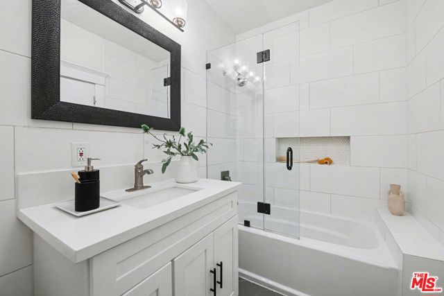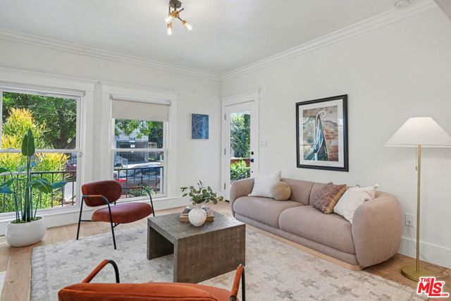 Charming 1922 Craftsman flat in the sought-after Hollywood Studio District. This stylish 2-bedroom, 1.5-bath garden-level TIC blends vintage character with thoughtful modern upgrades. The spacious living and dining areas feature high ceilings, period details, and abundant natural light. Tastefully renovated throughout, the home offers wide-plank hardwood flooring, skim-coated walls, double-pane windows, ductless A/C, a laundry porch, and upgraded electrical and plumbing systems. The designer kitchen and baths showcase stainless steel appliances, a vented range hood, custom tile work, shaker cabinetry, and quartz countertops. Enjoy a private garden retreat, a single-car garage plus tandem driveway parking, and a secure gated entrance. Ideally located near Paramount Studios, Larchmont Village, Koreatown, DTLA transit connections, and an array of shops, cafs, and restaurants.