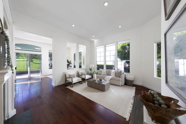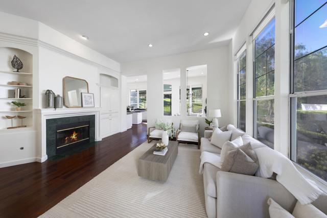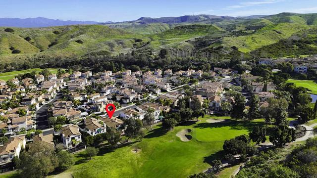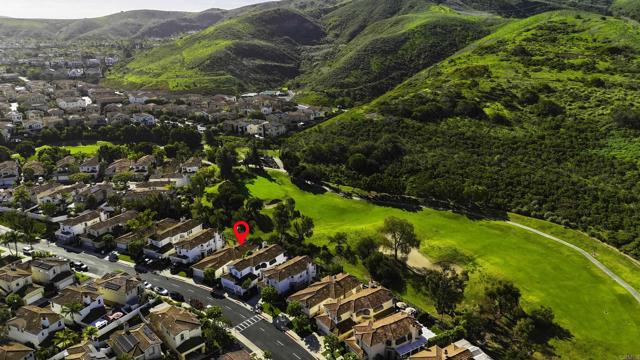Extremely Rare and sought-after Single-Story Golf Course Villa perfectly situated on the 13th fairway and surrounded by towering trees and majestic hillside sculptures in the highly coveted San Juan Hills Community! Relax and enjoy the Quiet of this Serene, still location boasting stunning, sit down views from virtually every room. Upon entering your spacious courtyard be awed by the meandering flag stone path leading directly to your front door. Once inside, take in the Dramatic High ceilings and abundant Natural light! The home shows incredibly Light and Bright! The Open Kitchen concept offers an island, abundant cabinets, spacious pantry and connects seamlessly to your Formal Dining and outdoor Patio space. The living room provides ample capacity for lounging and is accented by a mesmerizing flickering "heart of the home" fireplace! The Den is ideal for tv viewing, or it can easily be converted into an office or 3rd bedroom! The primary Suite captures the essence of tranquility, luxury and picturesque, rolling green views in your own retreat that feels like a permanent vacation! The masterfully designed patio is your private sanctuary overlooking the links and has sufficient clearance to add a spa retreat or relaxation deck! All this and more in San Juan Hills where peaceful morning views meet championship living!