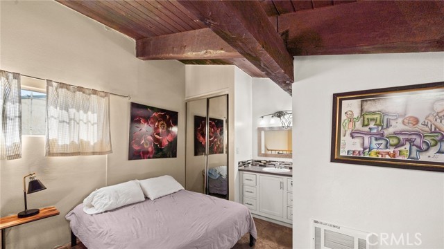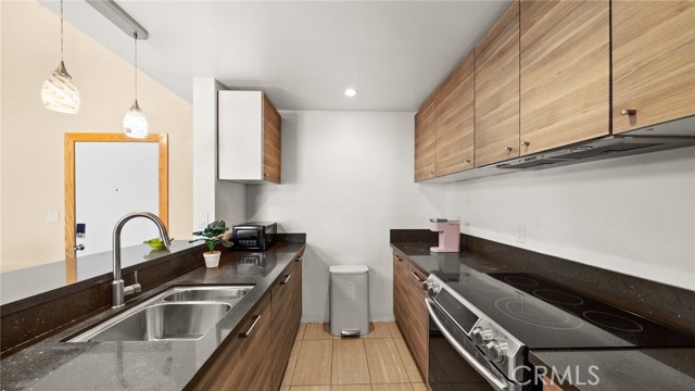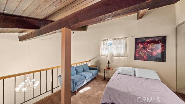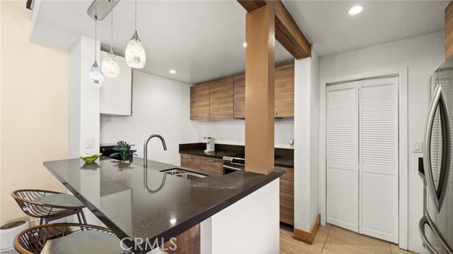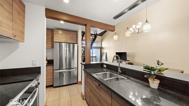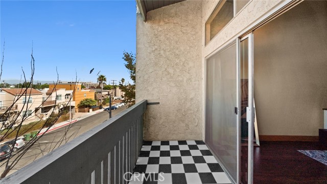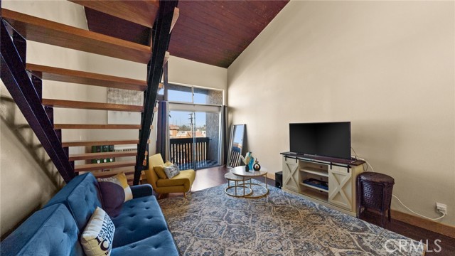 This end unit condo welcomes you with 30 foot cathedral beamed ceilings, hardwood floors and porcelain tile throughout the first level. The galley kitchen boasts quartz countertops, stainless steel appliances and breakfast bar seating. Enjoy the balcony off the first floor, complete with storage. The primary bathroom includes a walk-in shower with bench seating, while the loft bathroom has a tub/shower combination. Amenities include 2 assigned parking spaces, guest parking, street parking, swimming pool, jacuzzi, sauna, recreation room, laundry facilities on each floor, and convenient trash chutes. The building offers secure entry and security cameras throughout. Conveniently located near LAX, SoFi Stadium and Intuit Dome.