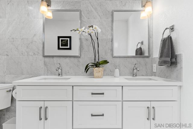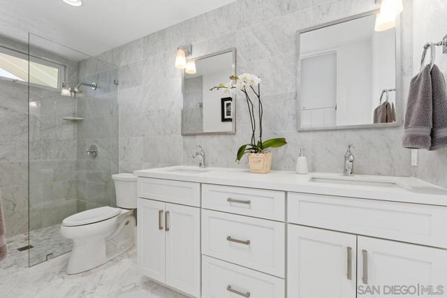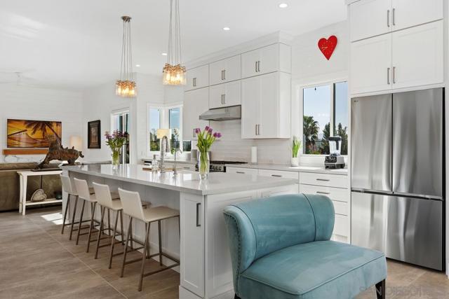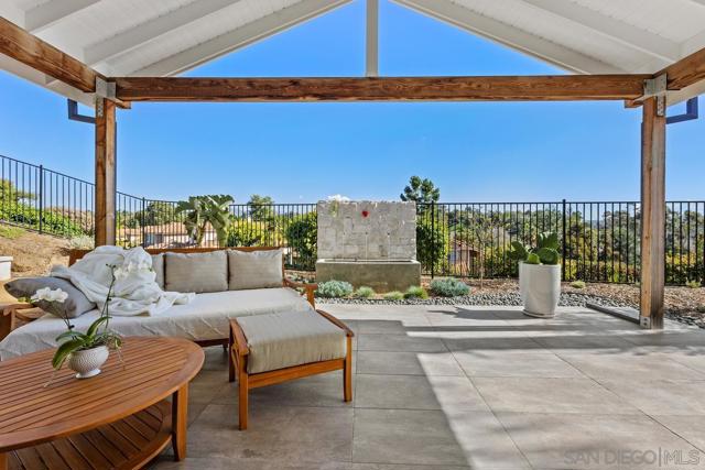 Perched atop Falcon Hill on a premier peninsula lot, this stunning single-story home captures sweeping 180-degree mountain and hill views with refreshing coastal breezes. With no Mello Roos and a low HOA, this is a rare opportunity not to miss. Buena Vista Park with is scenic trails and a peaceful duck pond is directly across the street. Ideally located just 15 minutes to Carlsbad Beach and 5 minutes to the Carlsbad Research & Business Center, (SoCal’s Silicon Valley) with major shopping and dining all within 5–10 minutes. Completely remodeled and truly turnkey, the home features 10-foot ceilings, a custom marble fireplace, and an oversized island anchoring the Great Room. The chef’s kitchen showcases white shaker soft-close cabinetry, quartz countertops, Kohler fixtures, and porcelain tile flooring throughout. The primary suite offers a vaulted ceiling and spa-inspired Carrara marble bath. New Milgard windows and doors enhance efficiency and style. Major upgrades include a new roof, 16 paid solar panels with Enphase inverter, full attic refurbishment, insulated garage door and opener, whole-house filtration with reverse osmosis, new concrete driveway and walkways, fresh exterior paint, and new fencing. The entertainer’s backyard features a covered patio with metal roof, custom gas/wood-burning fireplace with built-in seating, matching water feature, drought-tolerant landscaping, four producing citrus trees, and raised garden beds. Enjoy 4th of July fireworks from your own backyard. A beautifully upgraded view home in one of the area’s most desirable neighborhoods.