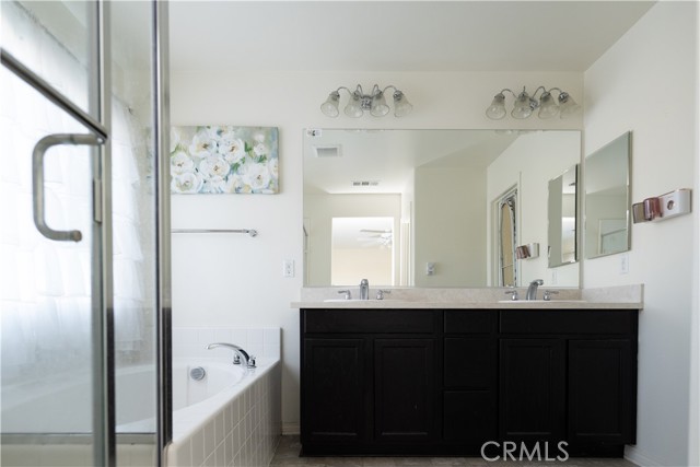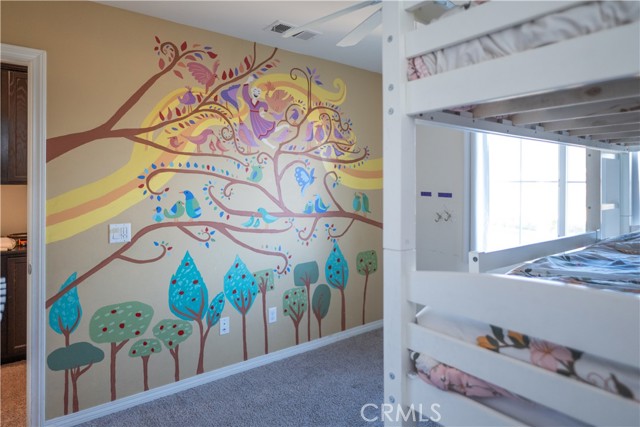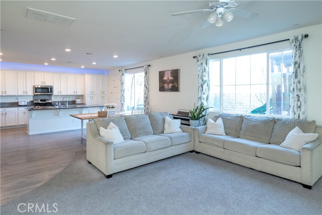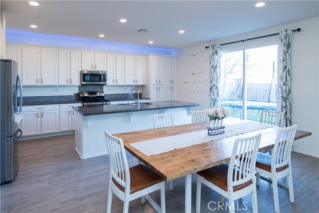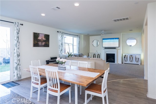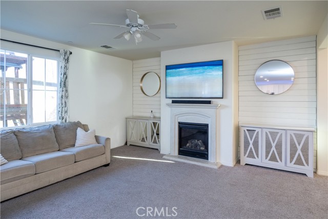 Welcome to this beautiful two-story home located in the desirable Rosena Ranch community! This spacious 4 bedroom, 3 bathroom residence offers comfort, style, and energy efficiency with solar included. Step inside to a bright living room featuring a large window that fills the space with natural light, cozy fireplace, and stylish shiplap accents. The living area flows seamlessly into the kitchen, creating an ideal layout for everyday living and entertaining. The kitchen is designed to impress with an eat-in dining space, large center island with seating space, a sliding glass door leading to the backyard, white cabinetry with gold-tone hardware, black granite countertops, stainless steel appliances, built-in microwave, and refrigerator included. Upstairs, you’ll find comfortable bedrooms and a spacious primary suite featuring a large window that filles the space with natural light. The primary ensuite offers dual sinks, a separate soaking tub, and a walk-in shower - perfect for spa-like relaxation. Additional highlights include a 3-car attached garage, laminate flooring downstairs, carpet upstairs, local mountain views, solar for energy savings. Conveniently located near schools, shopping, dining, and local entertainment, this home offers the perfect balance of comfort and convenience.