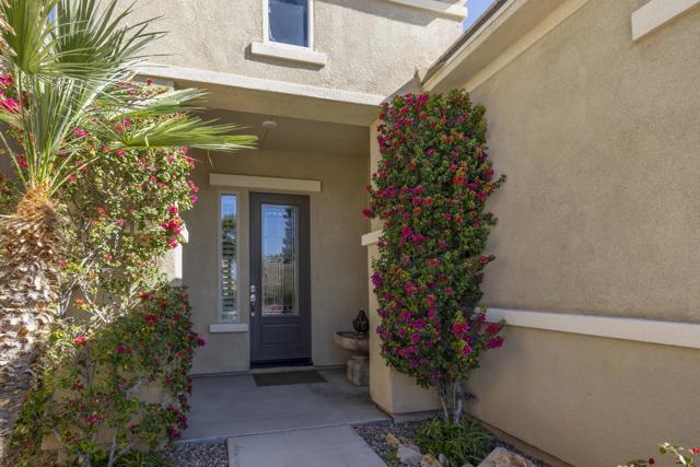Welcome to his beautifully upgraded Hospitality model offering 1756 sq ft of tastefully designer living space that blends comfort, style and functionality. From the moment you arrive, the curb appeal with it's gorgeous landscaping welcomes you. The elegant glass front door sets the tone for the light and airy interior. Inside, you'll find custom shutters and ceiling fans throughout, adding both sophistication and energy efficiency to every room. The heart of the home is the upgraded chef's kitchen featuring a spacious center island perfect for entertaining, meal prep, and casual dining. The open concept layout flows seamlessly into the dining room and the great room, where a cozy heatilator fireplace creates the perfect gathering space for relaxing evenings. The private primary suite offers a desirable slider to the backyard, and a very cool barn door to the attached bath. The ensuite bath has dual vanities, a walk-in shower and soaking tub. There are two extra bedrooms and a laundry room complete with washer and dryer. Step outside to enjoy the extended patio and mature fruit trees and specimen plantings - an ideal setting for morning coffee or weekend entertaining. Keep cool and relaxed in your salt water pool . Additional highlights include a well appointed garage complete with custom storage cabinets and a tankless water heater for added efficiency and convenience. Located within walking distance to the dog park, this home offers the perfect combination of lifestyle and location. This move-in ready home truly checks all the boxes. Schedule your private showing today.