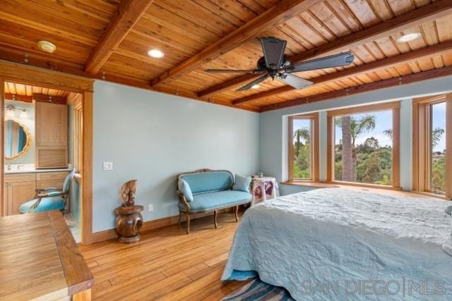 3097 Green Heather Lane is a custom-built California Craftsman estate offering 2,296 square feet, two bedrooms, and two-and-a-half baths on 1.08 acres of complete privacy in the rolling hills of Fallbrook. Surrounded by mature palms and layered landscaping, the property captures expansive hillside views yet remains beautifully secluded. True craftsmanship is evident throughout, with Douglas Fir ceilings, handcrafted wood details, bamboo flooring, and rich quartz surfaces grounding the interiors in warmth and authenticity. Expansive picture windows flood the home with natural light while framing panoramic vistas, and the layout flows effortlessly to covered patios and elevated terraces designed for relaxed indoor-outdoor living. The kitchen is designed for gathering, anchored by Bosch appliances and generous prep space suited for both intimate dinners and larger entertaining. Outdoors, terraced grounds unfold with flagstone walkways, curated garden spaces, and multiple seating areas ideal for sunset evenings. Three outbuildings—including the detached garage—along with a 12x20 structure with 12-foot ceilings, an 11x16 building, and 32-foot RV parking provide flexibility and function. The acreage offers refined country living with space for horses, companion animals, gardens, or simply room to breathe in total privacy. Experience the calm, privacy, and character that define this exceptional Fallbrook estate!