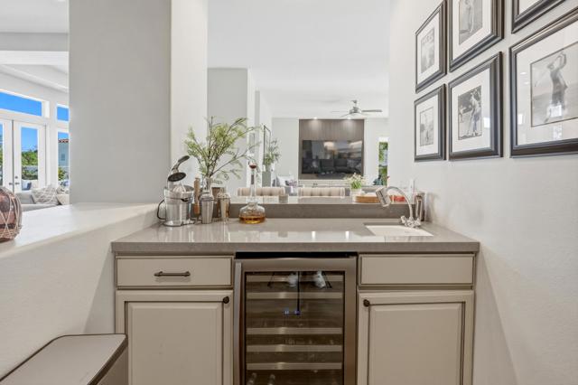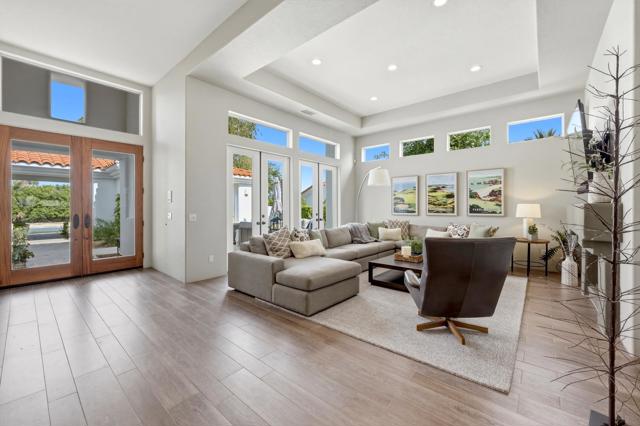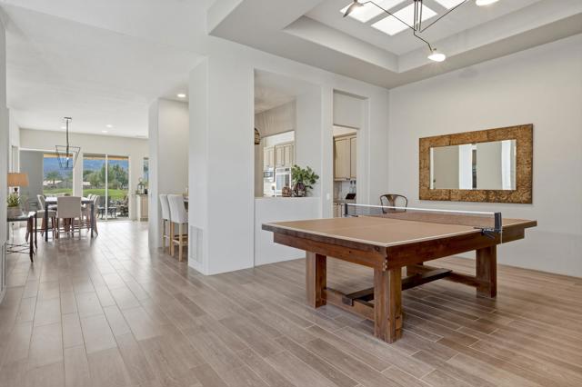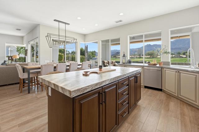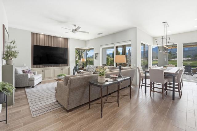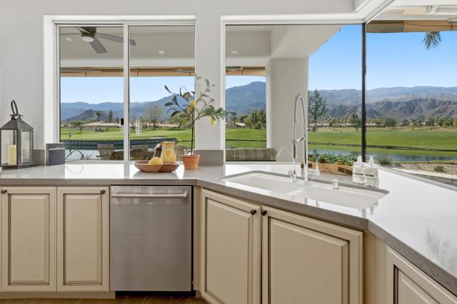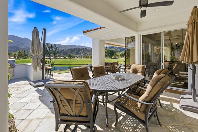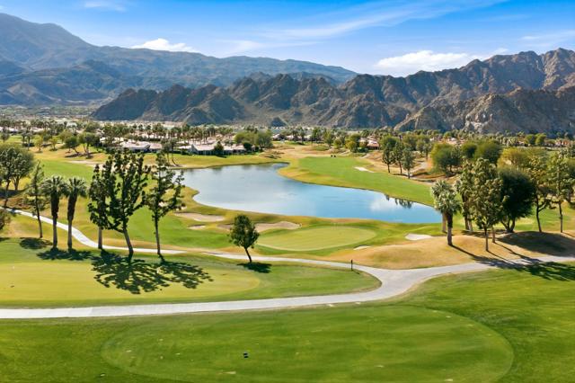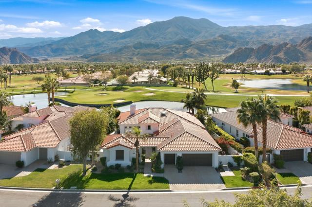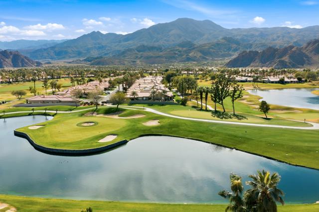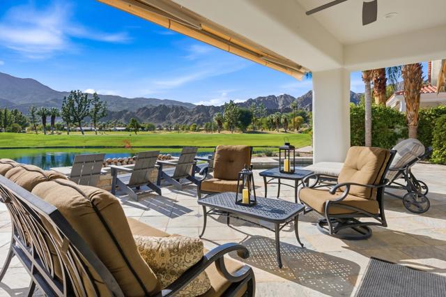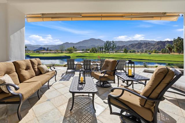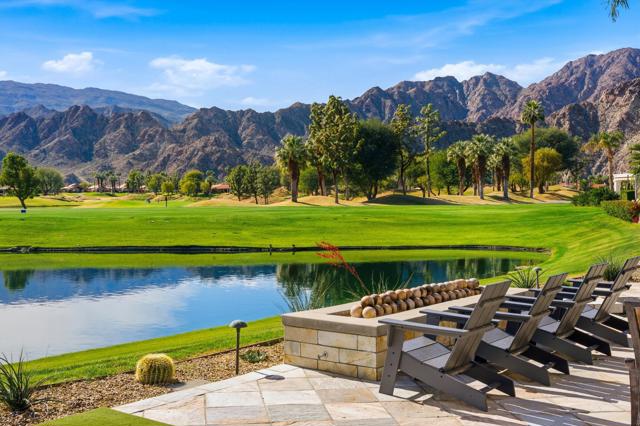 One of the most sought-after locations in PGA West. This is a rare opportunity to own on one of the most coveted streets in the community, offering panoramic lake, golf course, and Santa Rosa Mountain views that truly feel endless. Positioned directly across from the clubhouse, this home delivers one of the most convenient and desirable settings in all of PGA West. Featuring 4 bedrooms and 4.5 bathrooms, including a private detached casita, the layout is ideal for hosting family and guests while maintaining privacy. A striking dual-sided fireplace creates warmth and architectural interest between the main living areas, while expansive windows frame the Santa Rosa Mountains, allowing you to enjoy breathtaking views from nearly every primary room in the home. The newly refreshed courtyard is enhanced by a tranquil water feature, adding a sense of arrival and serene ambiance the moment you enter. The residence has been thoughtfully remodeled and enhanced, including fresh exterior paint, and upgraded outdoor living spaces designed for year-round desert enjoyment. The backyard patio captures breathtaking views while remaining safely positioned out of range from errant golf shots, providing both scenery and peace of mind. Enjoy evenings around the dramatic outdoor firepit, entertain with the built-in BBQ area, and stay comfortable even in warmer months with the integrated misting system. The location places you just moments from the private clubhouse, driving range, golf practice facilities, sports club with tennis, pickleball, fitness center, resort-style pool, and the community dog park. Offered furnished per inventory, this home provides a seamless opportunity to begin enjoying the PGA West lifestyle immediately.Opportunities on streets like this rarely come available.