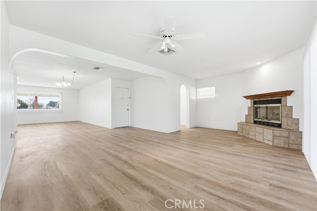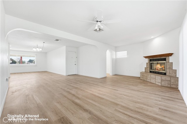 You will not believe it!!! One of the best homes there is in this amazing 55+ Sun City Civic HOA complex. Check out the ALL the photos and drone shots. PROPERTY: A classy single family one level home with a golf course directly in the back. New Flooring, New Paint, New Kitchen, New appliances, with central air and heating. 2 sky lights, 1 car attached garage plus an enclosed long covered carport with extra room for a golf cart. Washer and dryer are in the garage. Walk to the amazing expansive recreation areas with multiple pools, huge community theater, huge game room, huge amphitheater, 20+ clubs, pickle ball court, and a rocking senior community with dances, contests and many more recreational activities. The HOA dues are unbelievably low at only $37.50/month and paid annually. INSIDE: A great room greets you upon entry, and you can see all the way to golf course. Everything smells new. It has a large living room, large family room with fireplace and good size dining area. There is a small office next to the family room. There is a totally brand new kitchen with a center aisle, new appliances and a skylight. The MAIN BEDROOM is large and private, with a large window to the golf course. It has a huge walk in closet with mirrored closet doors. The attached main bathroom has a newly tiled walk in shower with a seat and a grab bar. Double sinks adorn this main bathroom. The whole main suite is gorgeous. The 2nd bedroom is also large with mirrored closet doors. Both bedrooms and the living areas have ceiling fans. The Common 2nd bathroom has a shower over tub and has a skylight above. The backyard is very relaxing and has 3 Aluma Wood patios and looks directly into the golf course. Great place to have a relaxing and peaceful coffee and ponder into the green grass. We could go on and on.... so you've gotta see it before it's gone. DISCLAIMER: A senior citizen passed away in home because due to natural casues of a heart attack in July of 2025. The golf course is separate from the HOA and under new management.
