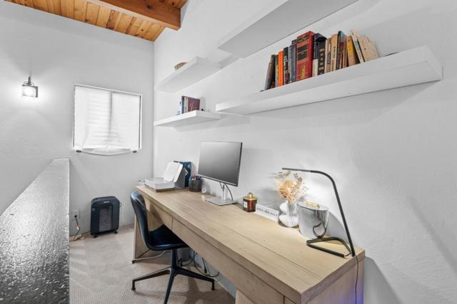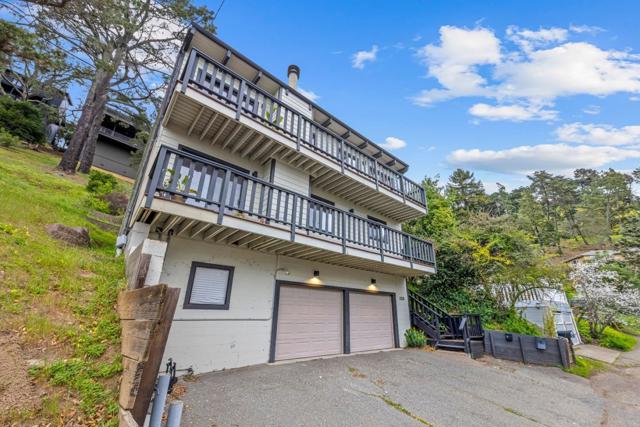 Tucked in the serene Woodminster neighborhood of the Oakland Hills, this striking 1988 Contemporary tri-level home offers perfect blend of modern comfort, style and rustic charm, with easy commute to major employment hubs in San Francisco and East Bay. This 2-bed, 3-bath home boasts 1,505 sqft of living space, with breathtaking views of the Bay and surrounding hills and mountains. Kitchen is chef's delight, with gas cooktop, granite countertops, and a suite of modern appliances including a dishwasher, microwave, and refrigerator, with ample pantry space for storage. Home features soaring open-beamed ceilings, warm interior updates, beautiful hardwood, tile, and carpet flooring, adding warmth and elegance to each room. Primary suite occupies its own level, complete with walk-in closet and direct deck access. Multiple balcony decks extend from living spaces and bedrooms, providing the perfect stage for morning coffee or sunset cocktails overlooking the canyon. Home includes large two-car garage with substantial bonus room (not included in official square footage), plus approved plans for an ADU. Woodminster is one of Oaklands best-kept secrets, offering a peaceful, sparse suburban feel minutes from city conveniences, including Montclair Village for boutique shopping and dining