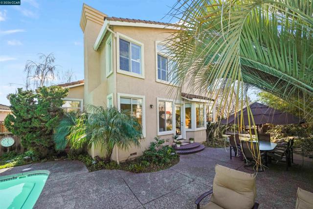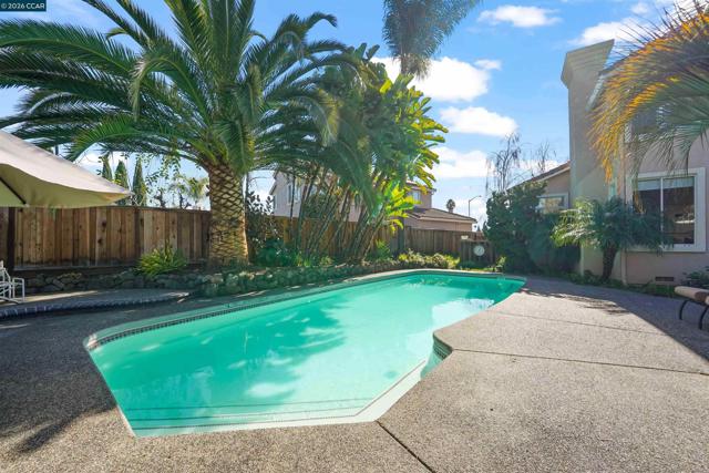 Beautifully updated residence offering comfort, versatility, and a premier Silicon Valley setting. The remodeled kitchen (2018) opens to inviting, light-filled living spaces enhanced by thoughtfully updated bathrooms and new carpet on the stairs and upper level. An adaptable upstairs loft provides the option for a fourth bedroom, while the downstairs office or den offers additional bedroom potential with a simple closet modification. Brand-new HVAC ensures year-round comfort. Set on an expansive lot, the private backyard presents a sparkling solar-heated pool and an elegant water feature that creates a tranquil, tropical-inspired retreat ideal for both relaxation and entertaining. A spacious three-car garage offers abundant room for vehicles, storage, or hobbies. Enjoy close proximity to the lake for scenic walks, along with convenient access to the Dumbarton Bridge and an easy commute to Palo Alto, including Meta and University Avenue. Exceptionally maintained and ready to enjoy.