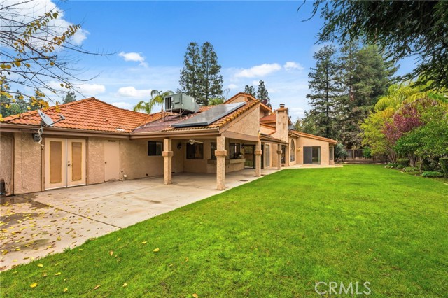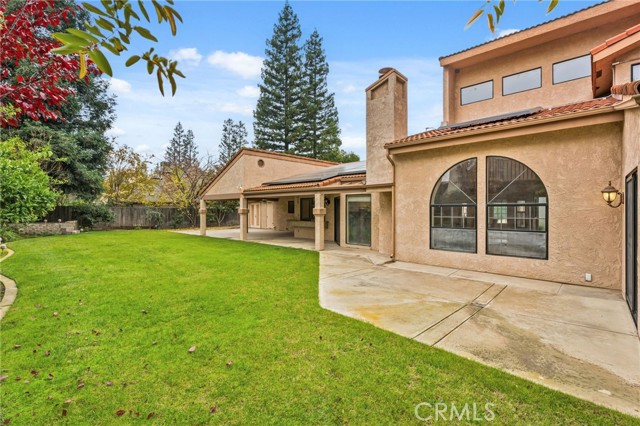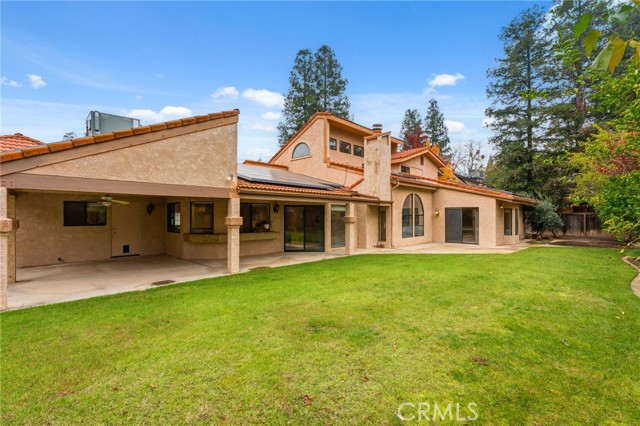 Beautiful home designed for entertaining, built to impress and located in the prestigious North Fresno/Bluffs area! This exceptional 3,400+ sq. ft. two story home offers 5 bedrooms and 3.5 bathrooms with a stunning multi-level architectural design, high ceilings, skylights, and abundant natural light throughout. The spacious layout includes two living rooms, a formal dining room, a den, and a welcoming nook near the main entranceperfect for plants or a cozy seating space.Plus located in Clovis School District! The home offers a desirable layout with the primary bedroom located downstairs, along with two additional bedrooms. Upstairs features two bedrooms and a versatile loft area.The kitchen features breakfast bar, large pantry, a newer electric range and dishwasher, and flows effortlessly into the main living areas. Bathrooms were remodeled approximately 3 years ago, and a gas fireplace that adds warmth and charm. Additional highlights include paid-off solar, a three-car garage with storage cabinets, tile roof, and generous storage with a linen closet and pantry. Spacious laundry room with a sink and cabinets. Outside, enjoy the peaceful neighborhood with mature landscaping, a huge patio, many fruit trees ranging from oranges to guavas, palm trees, plus a side gate and concrete slab ideal for RV parking. Enjoy the best of North Fresno living in the Bluffs-tucked into a peaceful, established neighborhood with quick access to Woodward Park, San Joaquin River trails, and the shopping/dining energy of River Park. This is the kind of location where evenings are for walks, weekends are for parks and family time, and everything you need is just minutes away. Step inside to experience a setting and lifestyle that are truly hard to beat!