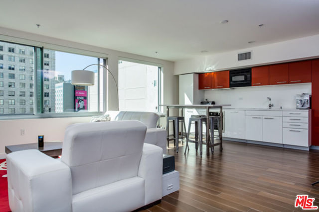 Secure the best deal in Downtown! Stunning, South-facing one bedroom corner unit in Concerto, located in the heart of South Park, with the lowest HOA dues of any newer building Downtown! Enjoy the urban lifestyle without having to get in your car. Across the street from Ralph's Fresh Fare and so close to LA Live, Crypto.com Arena, Whole Foods, FIDM, numerous great restaurants, bars, and coffee shops, a Metro stop, and the Peacock Theatre. If you're a sports fan, amazing location allows you to be part of the action. The Dodgers parade passes right by here and you can avoid expensive parking or public transportation when you go watch the Lakers, Kings, or Sparks play. Enjoy sun-drenched living spaces with extra large windows with unobstructed city views, hardwood floors, beautiful kitchen and cabinetry with European-style Liebherr hidden refrigerator/freezer and Fagor dishwasher. Bedroom has sliding frosted glass doors, home office nook, and a walk-in closet with custom cabinets. Spacious bathroom with shower and deep soaking tub. In-unit laundry. Secure building with beautiful pool, spa, fitness center, fire pits, BBQ area, dog park, and access to Apex Rooftop Lounge. This is the perfect condo for the discerning Downtown buyer who wants comfortable living and easy access, all for a great value!